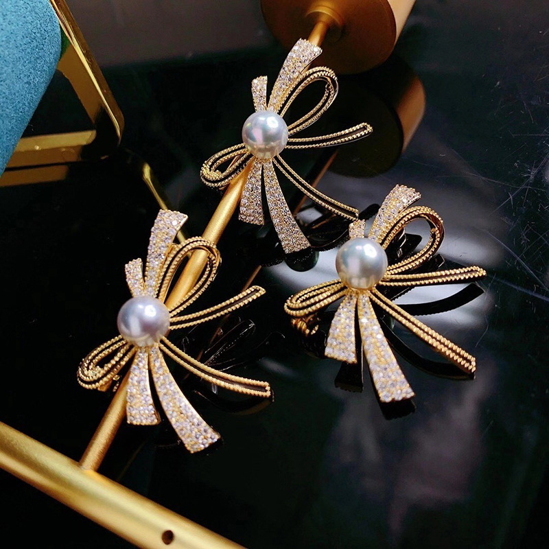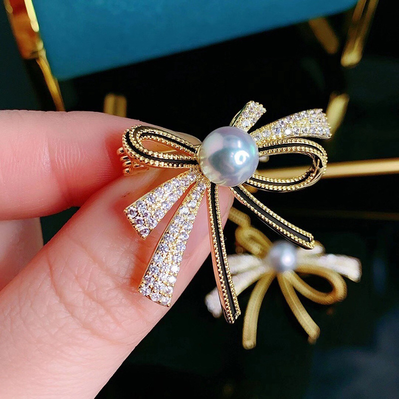 | nameOriginal | DIY Accessories Thick Gold Plated Micro-inlaid Zircon Stroke Bow Pearl Brooch Fashion Coat Pin Corsage Empty Bracket |