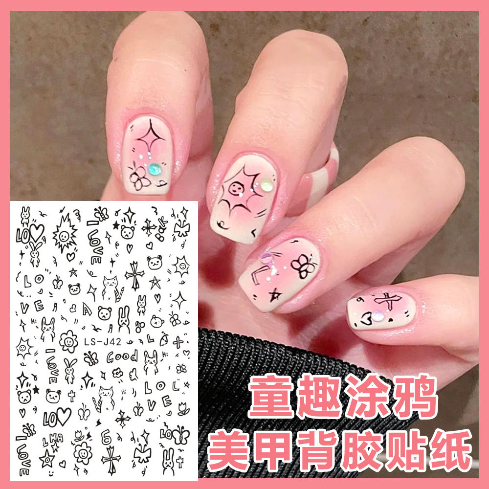 DIY adhesive cartoon bear flower sticker manicure