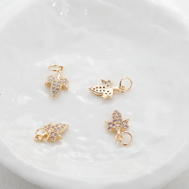 diy color-preserving zircon maple leaf moon pendant filled with gold