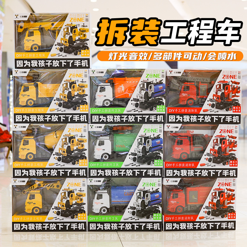 DIY disassembly and assembly engineering truck toy fire truck sanitation truck can be assembled screw puzzle assembly boys over 3 years old