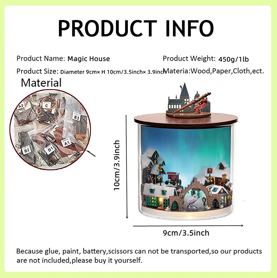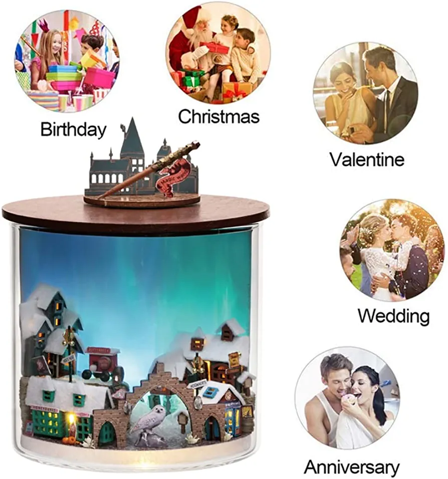 | nameOriginal | JAMSH Dollhouse DIY Miniature Wooden Furniture Kit,Mini Handmade Doll House with LED,Plus with Mini Glass Cover,1:24 Scale Creative Woodcrafts Toys for Adult Friend Lover Birthday Gift (Magic Light) |