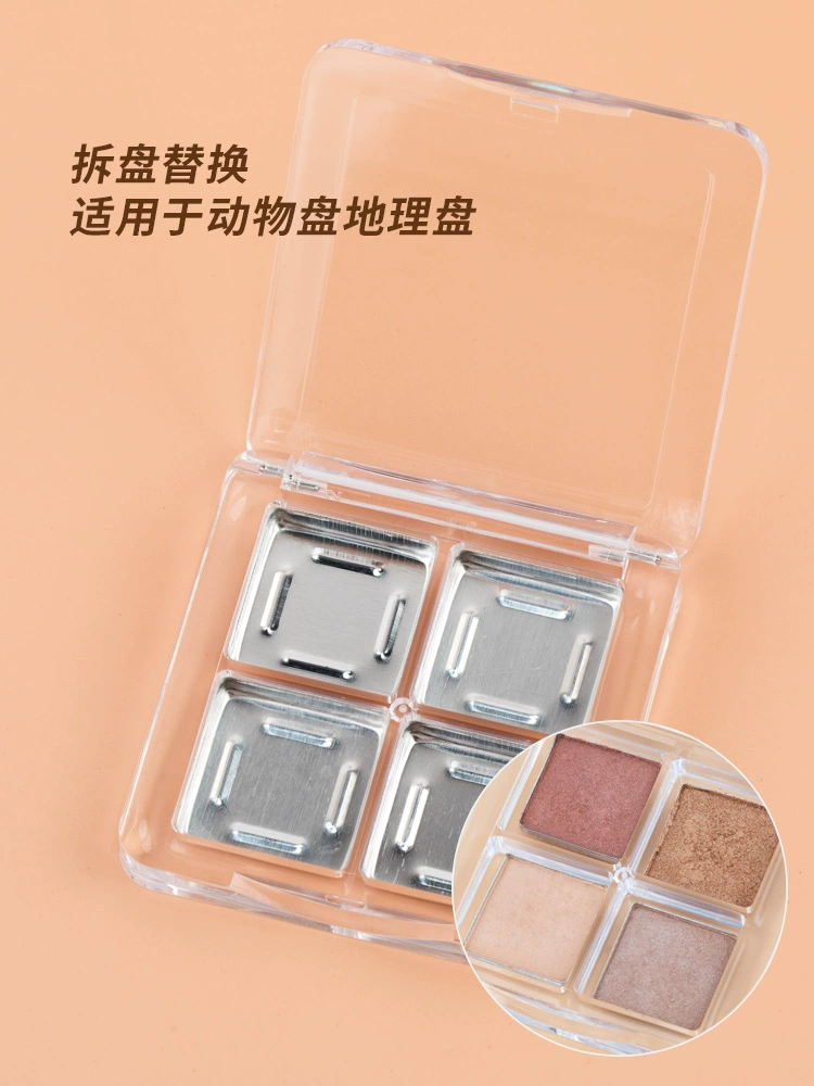 | nameOriginal | diy eye shadow mini 4 compartment box small capacity pressure plate four color transparent square lipstick color test sample empty plate |