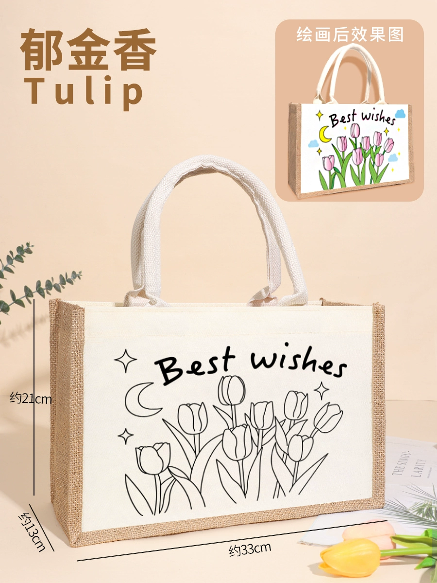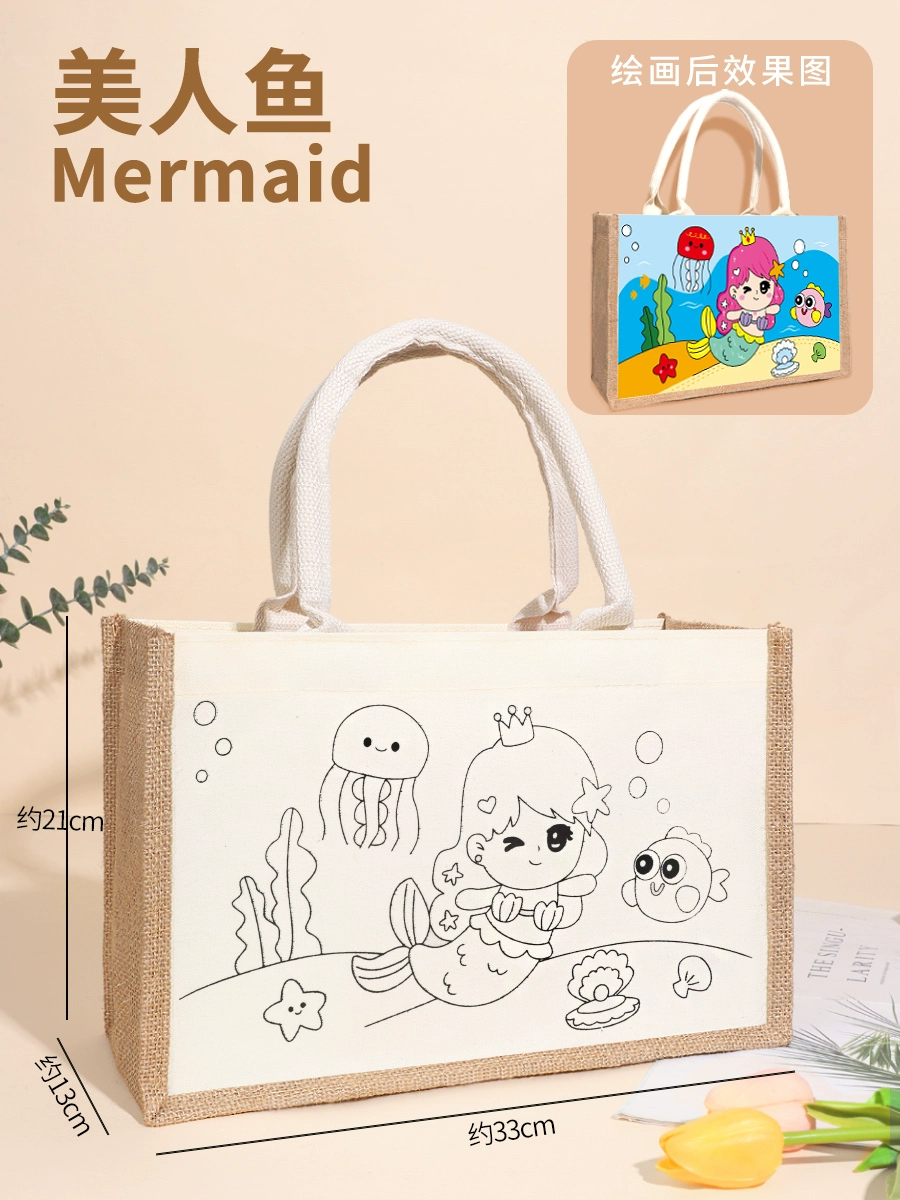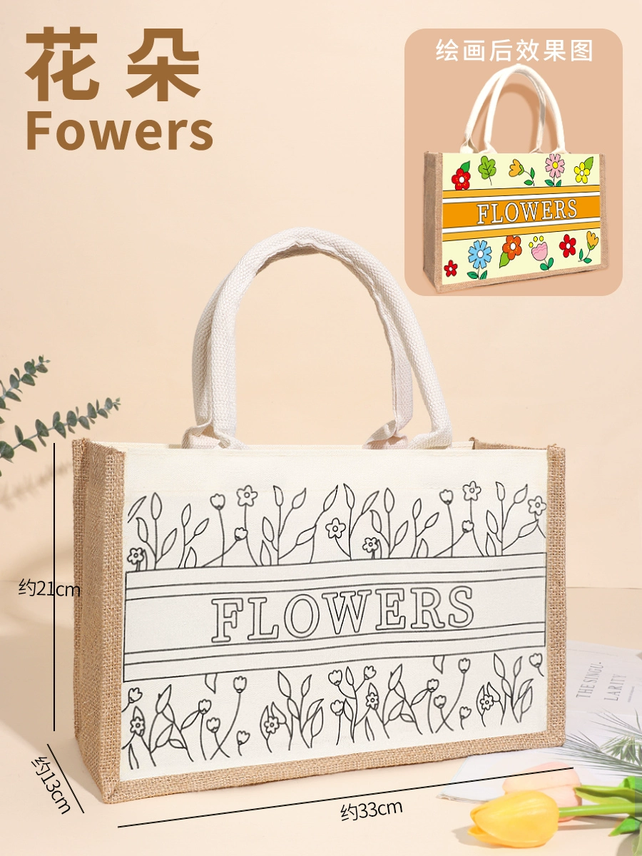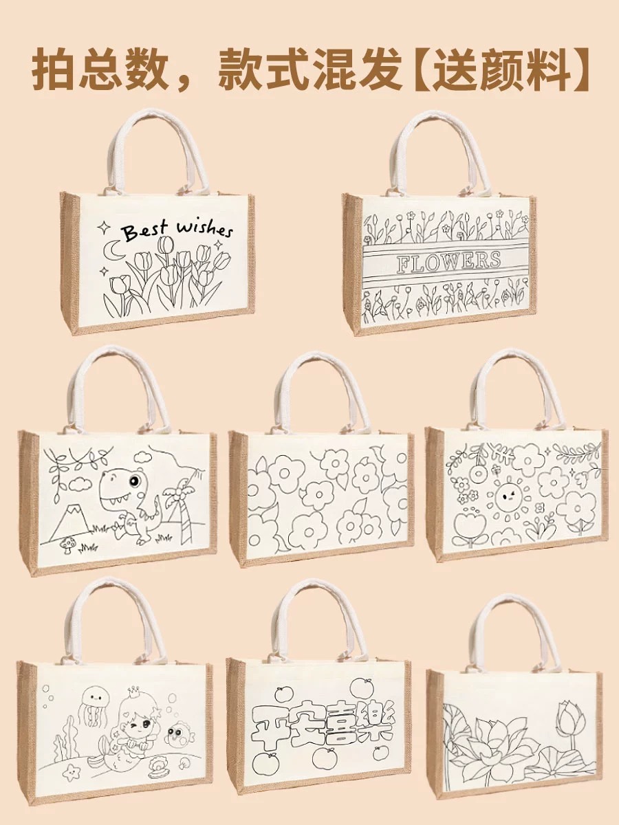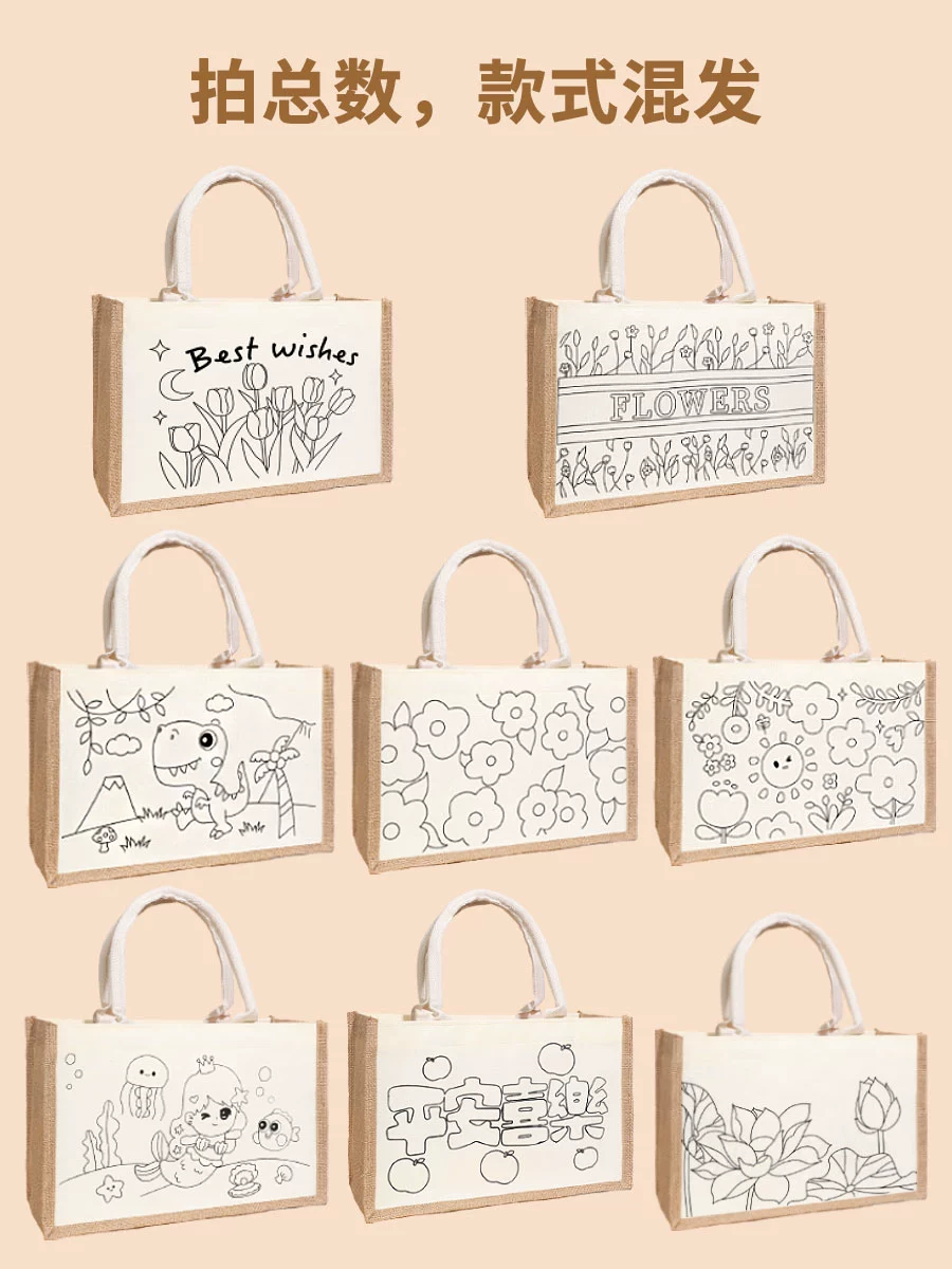 | nameOriginal | DIY graffiti canvas bag burlap bag hand-painted line drawing painting children's handmade kindergarten portable linen shopping bag |