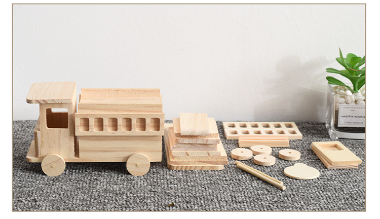 DIY handmade children’s kindergarten educational assembly toys solid wood model car Trojan horse building blocks airplane truck