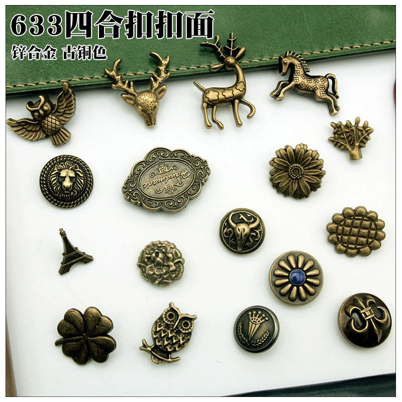 DIY handmade leather cowhide metal accessories animal flower bronze four-button face buckle suitable for 633 tools