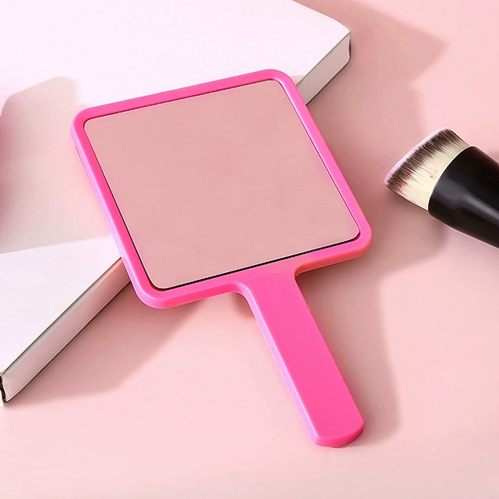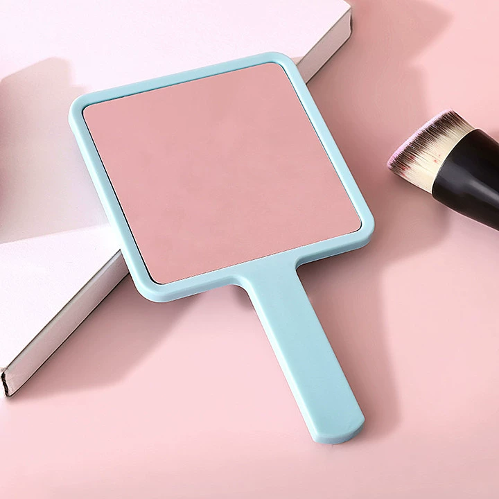 DIY homemade cream glue material mirror hand-held mirror cosmetic mirror square handle portable hand-held beauty mirror