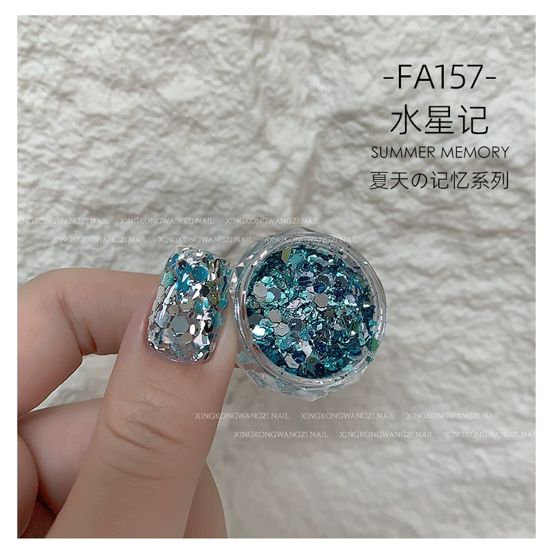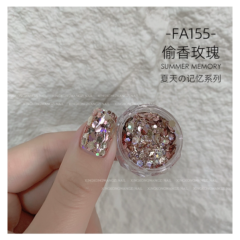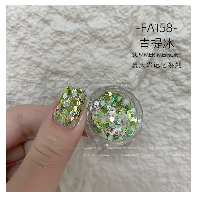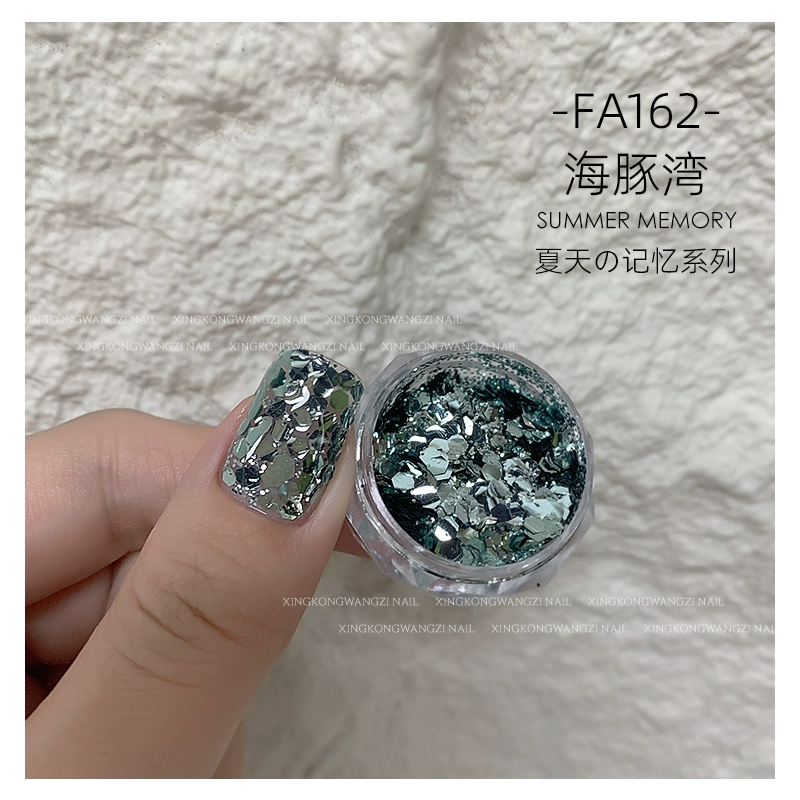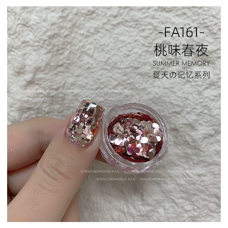 DIY Internet celebrity big sequin glitter pink green laser nail art