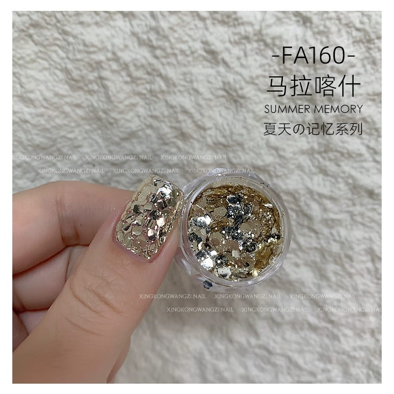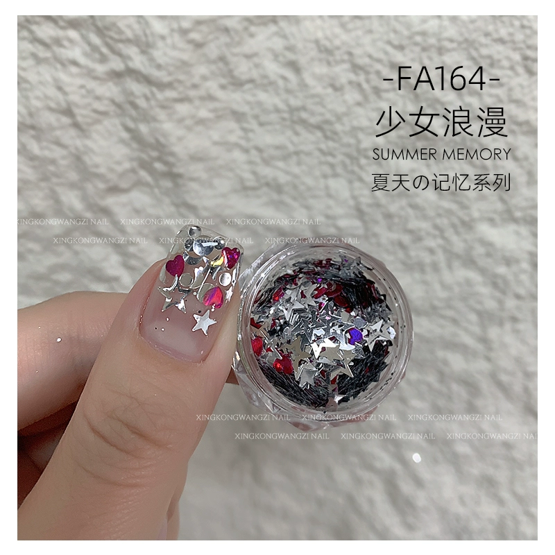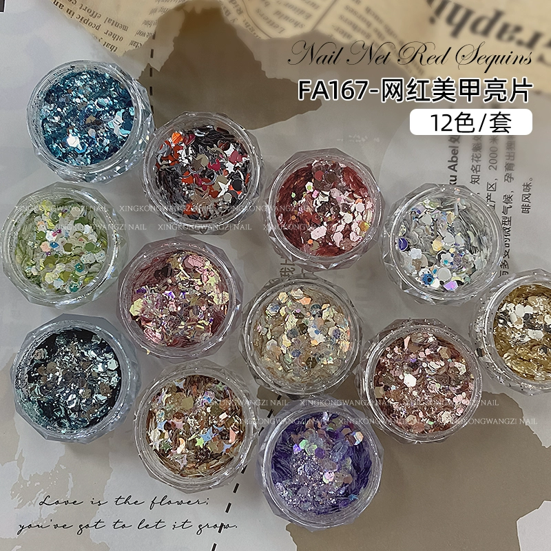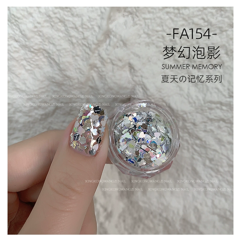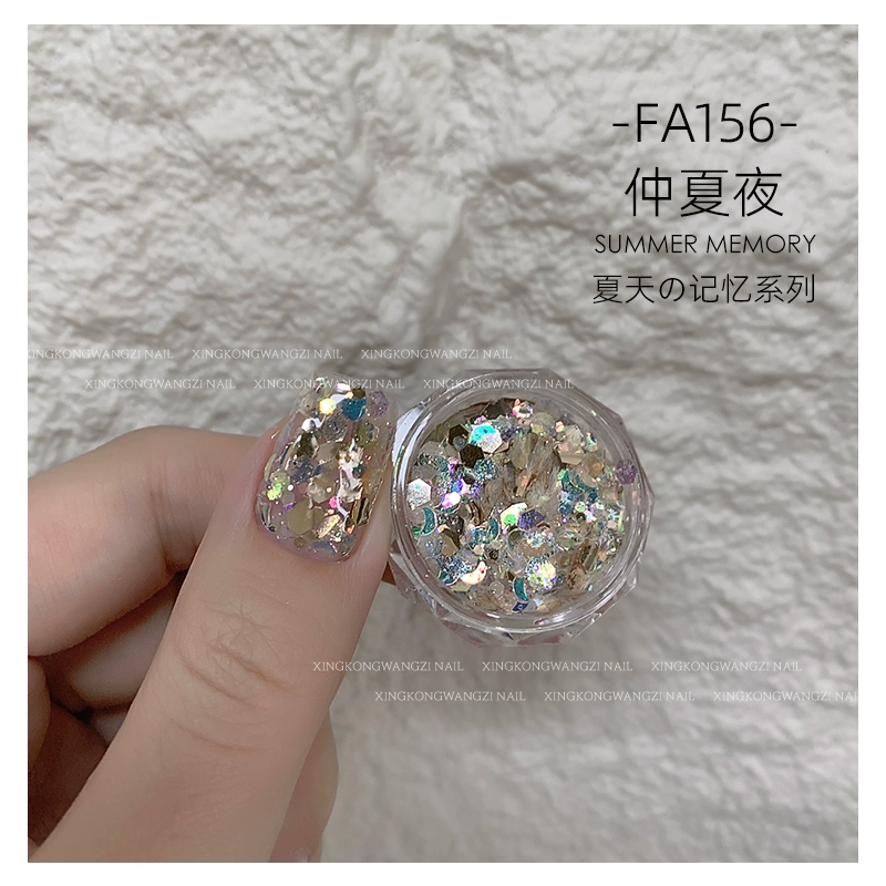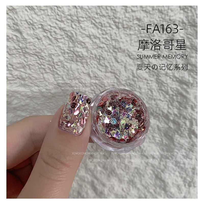 DIY Internet celebrity big sequin glitter pink green laser nail art
