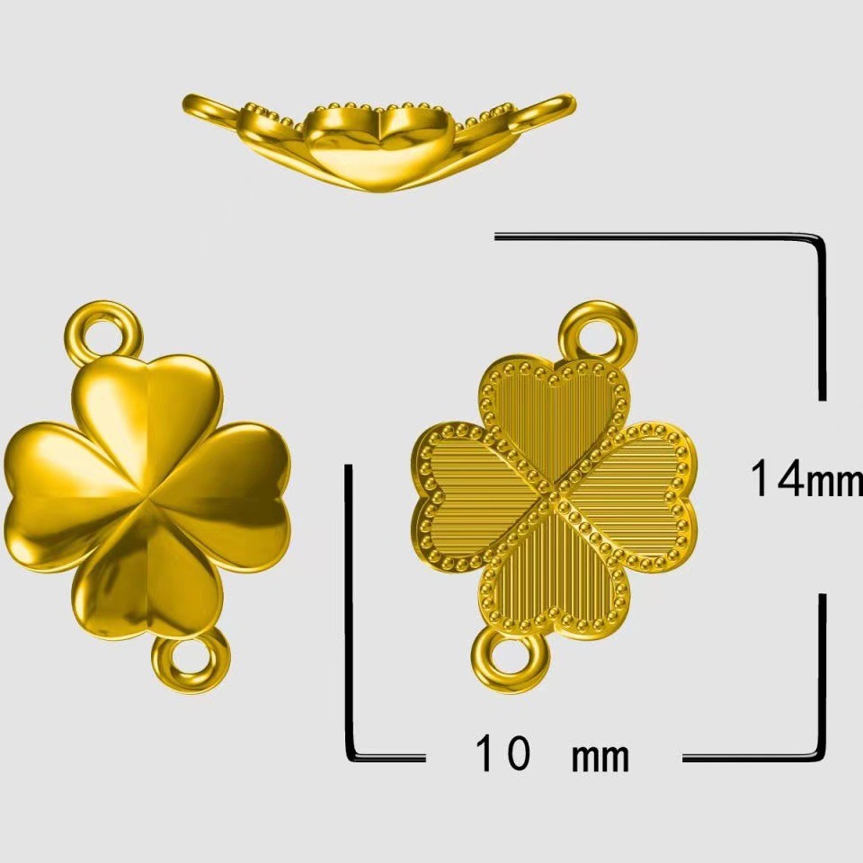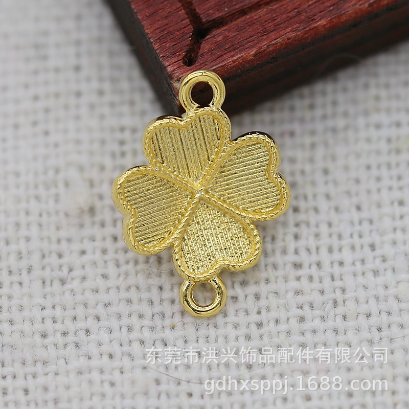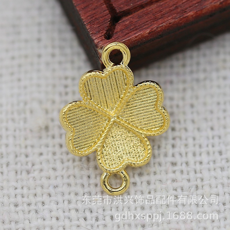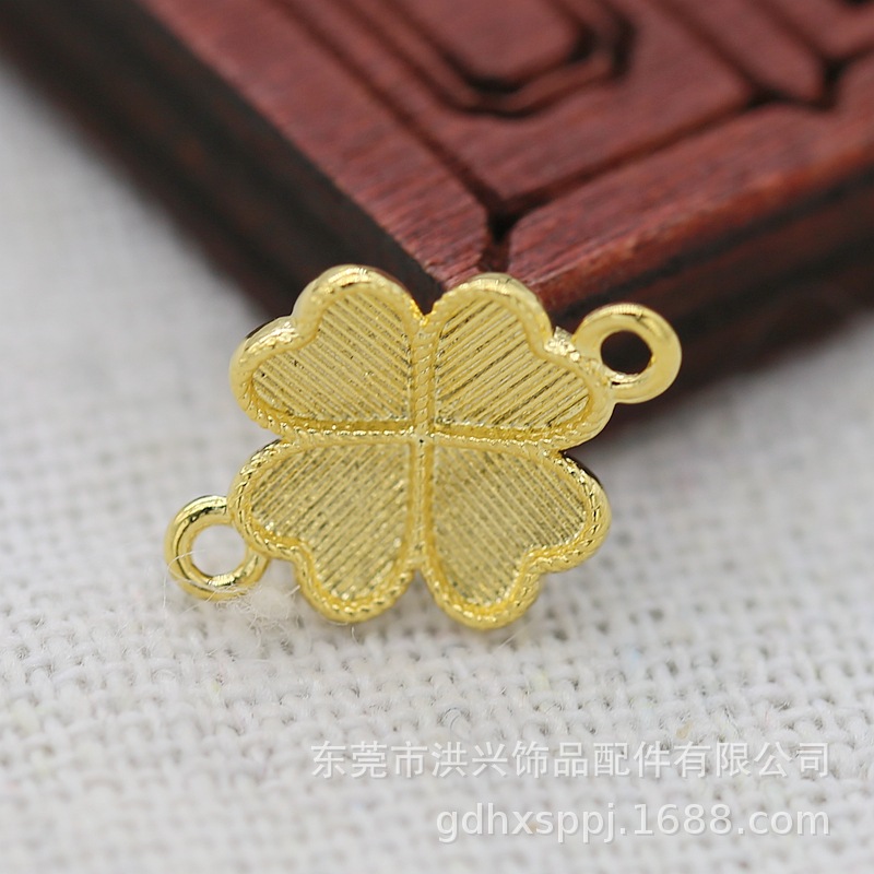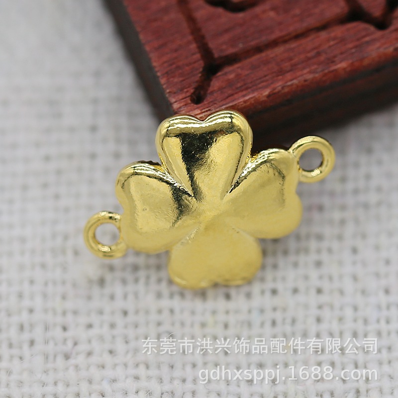 | nameOriginal | DIY jewelry pure copper 24k copper real gold color retention 10*14mm four-leaf clover imitation point green bottom embryo double hanging B2285 |