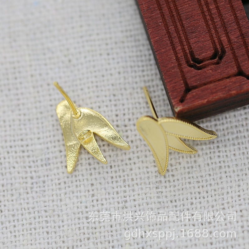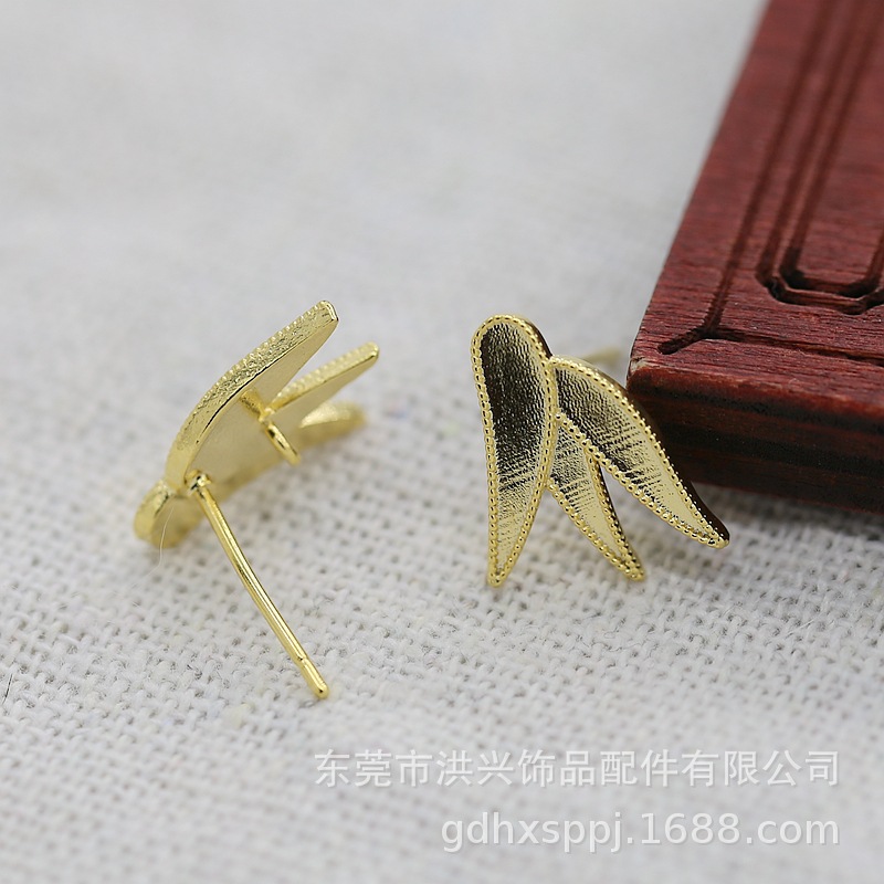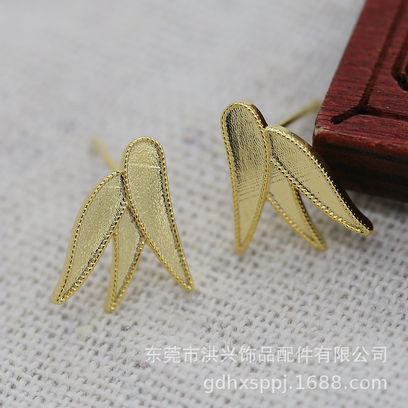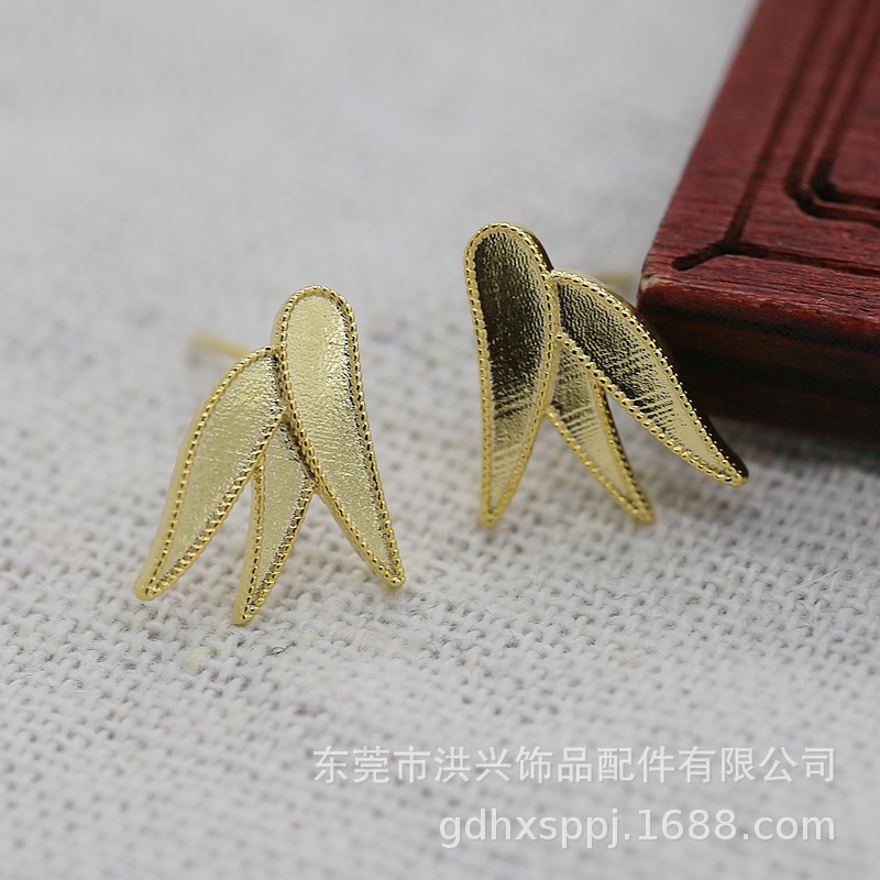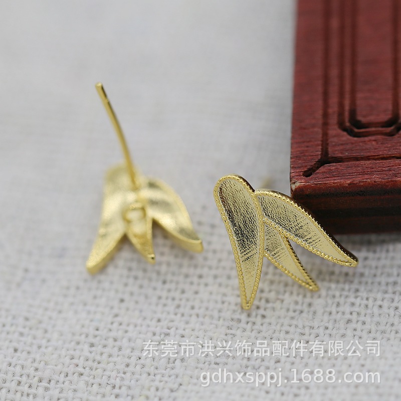DIY jewelry pure copper dripping oil imitation point green color retaining 13 * 11MM bamboo leaf ear studs accessories handmade B1939
