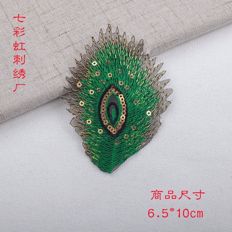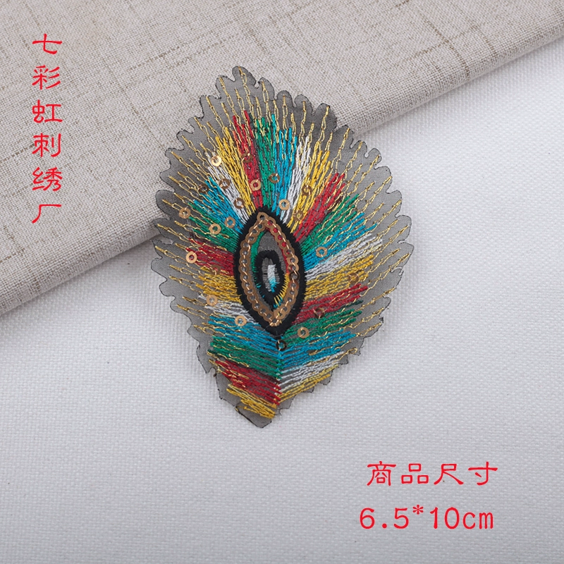 | nameOriginal | DIY materials accessories Opera ethnic peacock dance embroidery cloth stickers peacock tail cloth stickers hot stamping peacock feather appliques |