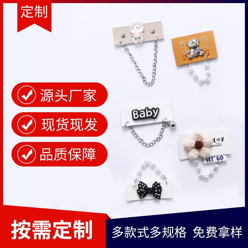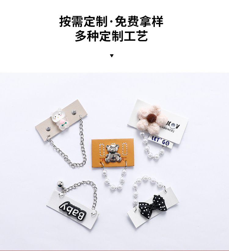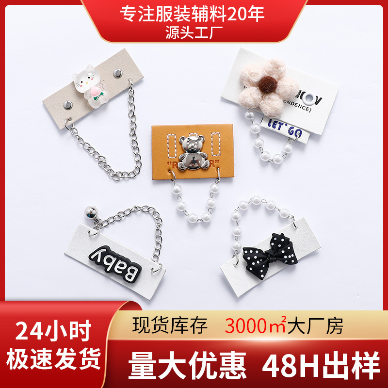 | nameOriginal | DIY resin PU leather label bag decorative clothes labeling clothing bag chain leather label flower chain leather label |