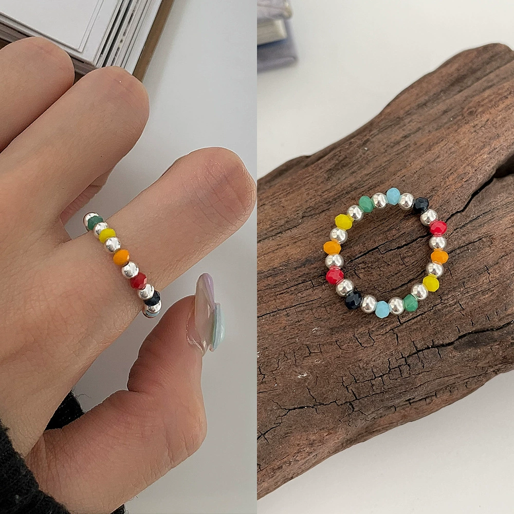 | nameOriginal | diy sterling silver smiley girl index finger ring hand decoration colorful beads |