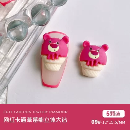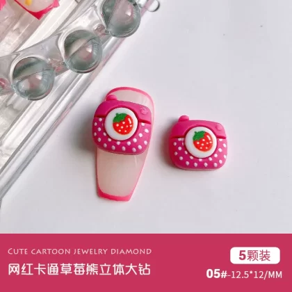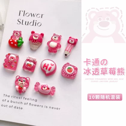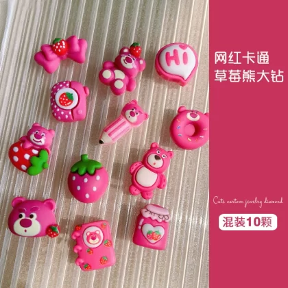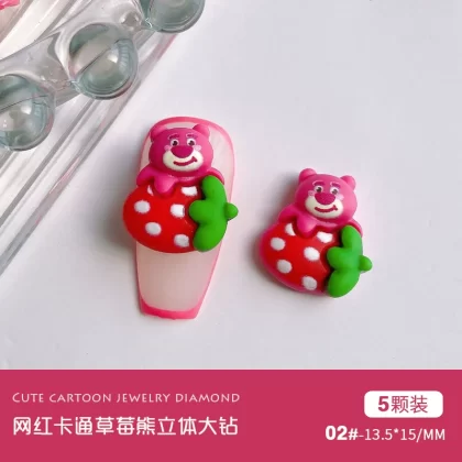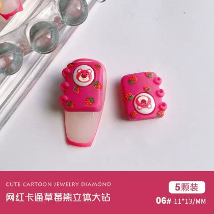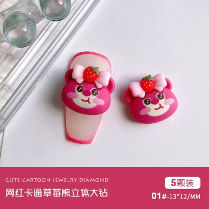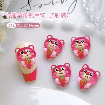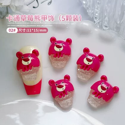 nameOriginal | DIY Strawberry Bear Cartoon Rose Red Resin Nail Art Accessories |