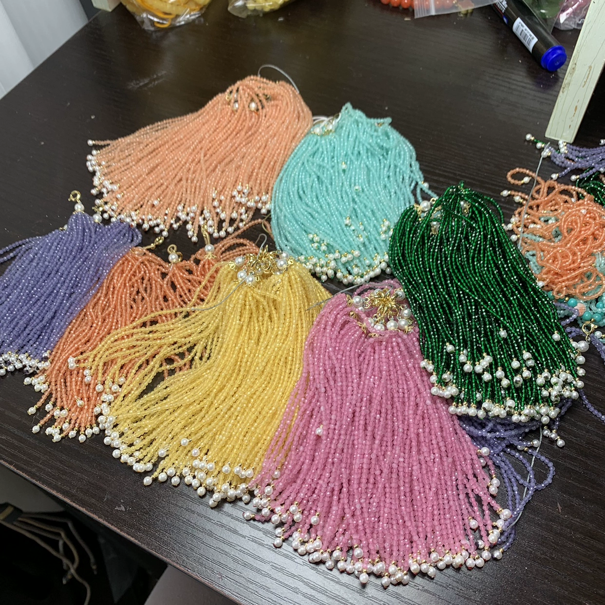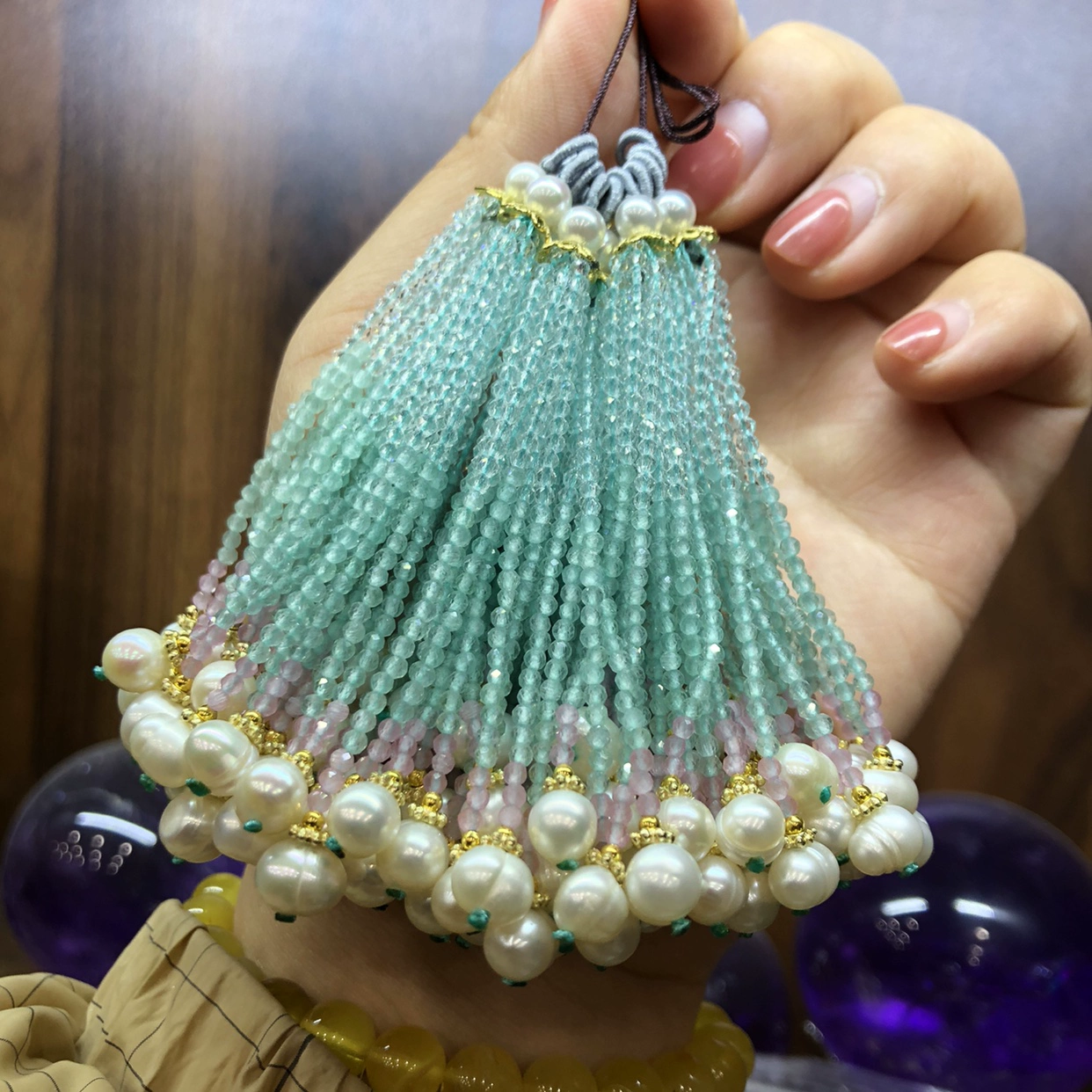 diy tassel accessories hand-beaded long tassels natural spinel pink blue purple champagne pearls