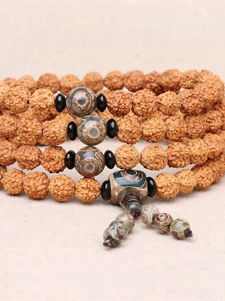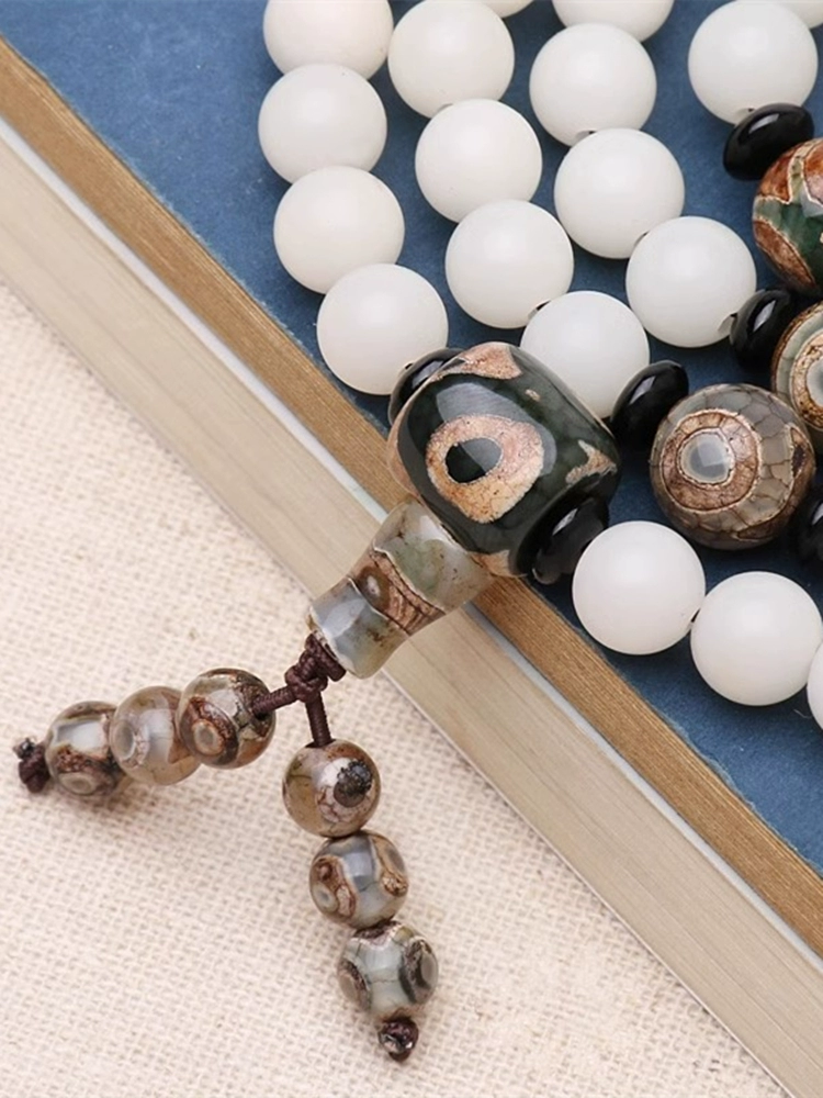 DIY Tibetan Vajra Star Moon Bodhi Seed Accessories Set Agate Dzi Beads Three-Tong Cultural Bracelet 108 Buddha Head