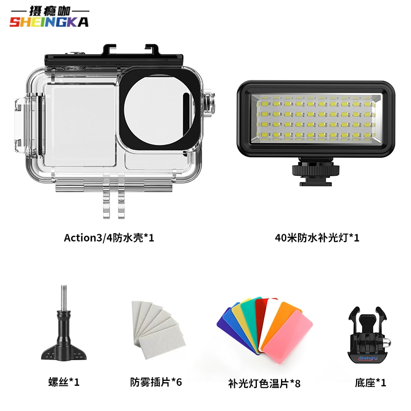 | nameOriginal | DJI Osmo Action3/4 action camera waterproof shell accessories Osmo action camera cold shoe opening expansion outdoor sports protective case 45 meters depth diving accessories storage set |