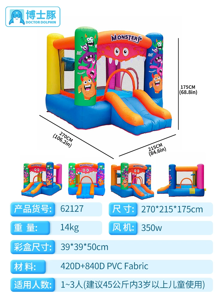 | nameOriginal | Doctor Dolphin household inflatable castle children's trampoline indoor outdoor small amusement park slide trampoline naughty castle |