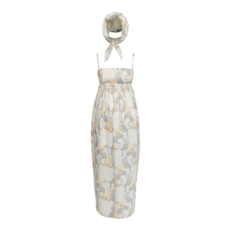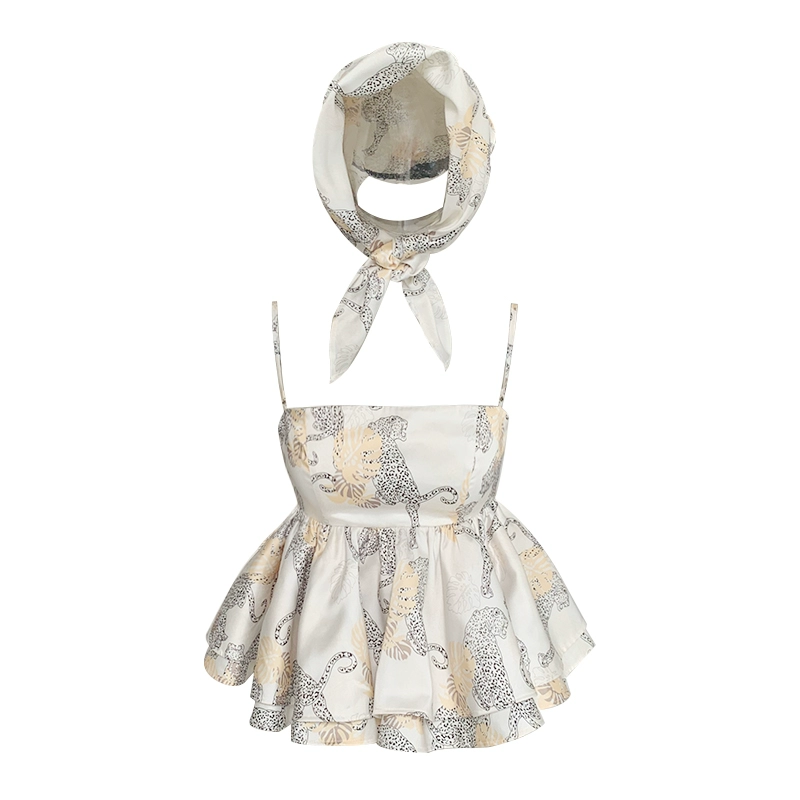 | nameOriginal | DoggyQin British cotton bottle/double-layer ruffled tube top and small suspender for women summer printed long skirt with headscarf |