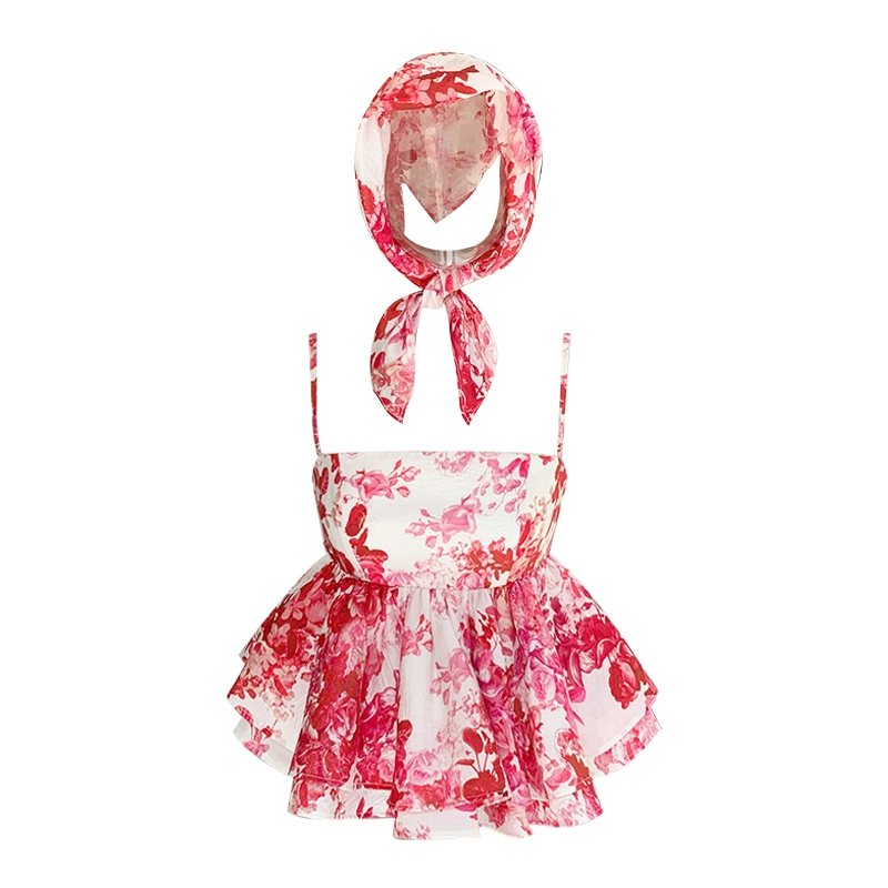 | nameOriginal | DoggyQin British cotton bottle/double-layer ruffled tube top and small suspender for women summer printed long skirt with headscarf |