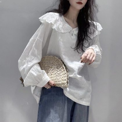 | nameOriginal | Doll Collar Shirt Women's 2024 Korean Style Elegant New Sweet Design Sense Niche White Sunscreen Shirt Top |
