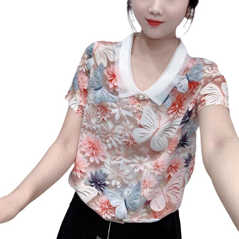 | nameOriginal | Doll Collar Short Sleeve Shirt Top Summer New Style Western Style Loose Flesh Covering Small Shirt Explosive Printed Chiffon Shirt Women's Trendy |