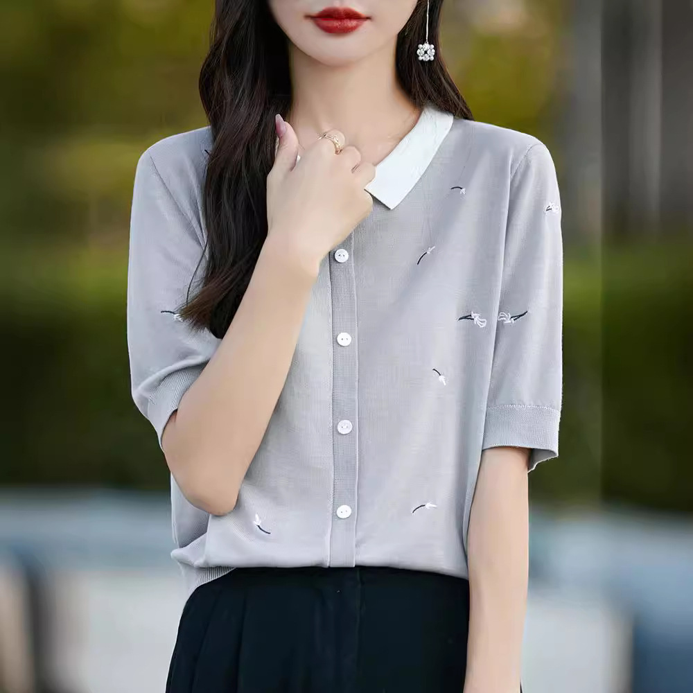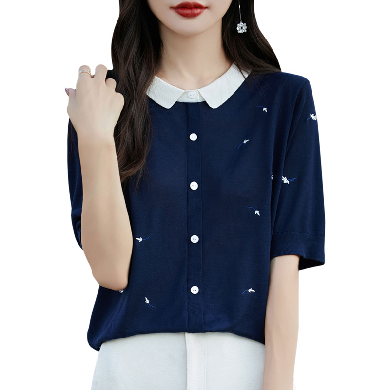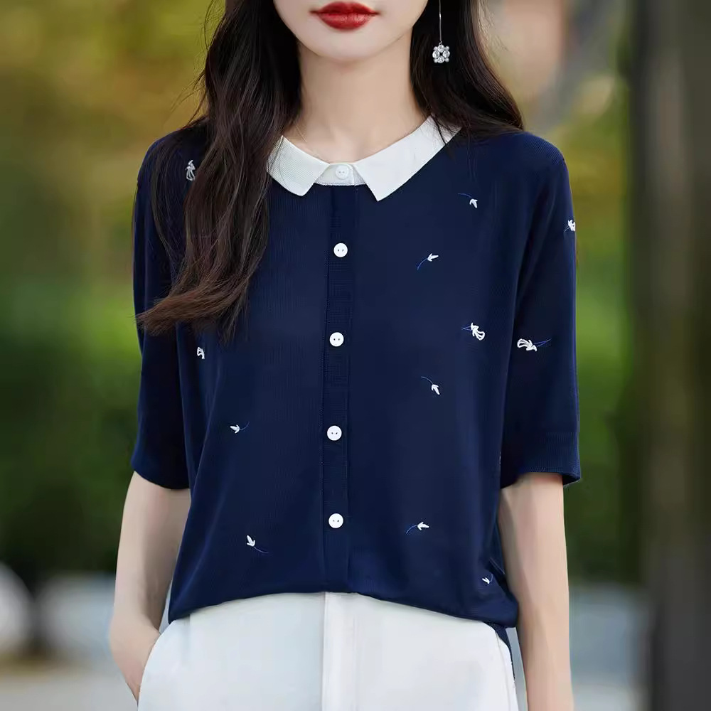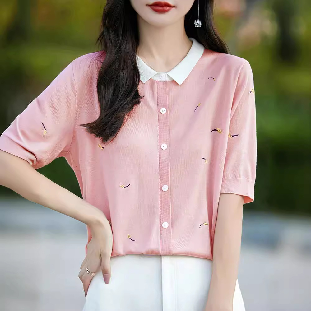 | nameOriginal | Doll Collar Short-sleeved T-shirt Women's 2024 New plus size Women's Summer Fashion Thin Loose Ice Silk Knitted Top |