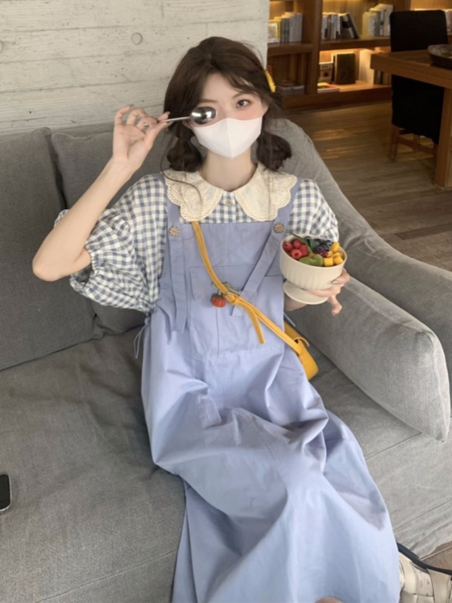 | nameOriginal | Doll collar suspender skirt fat mm belly-covering shirt |