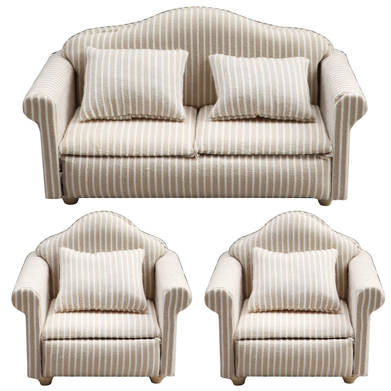 | nameOriginal | DollHouse dollhouse BJD miniature model OB11 mini furniture living room striped beige sofa three pieces 12 |