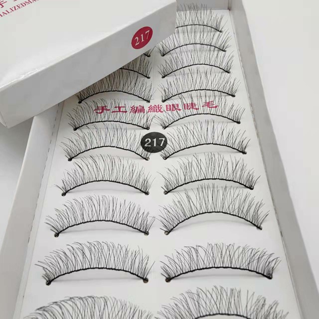 Domestic 217 daily natural artificial eyelashes nude makeup Taiwan slim 217 false eyelashes cotton stem thick 10 pairs