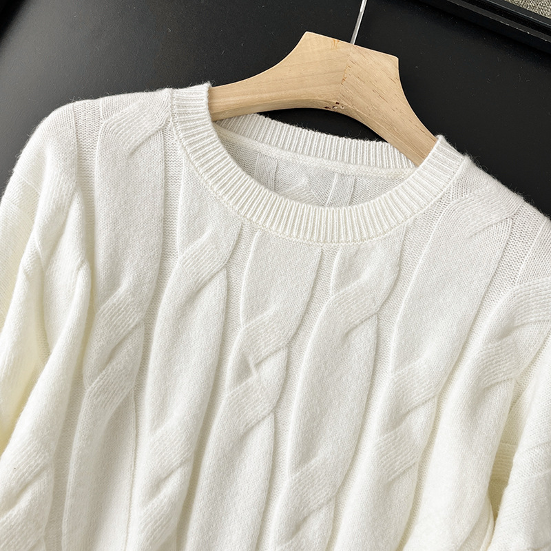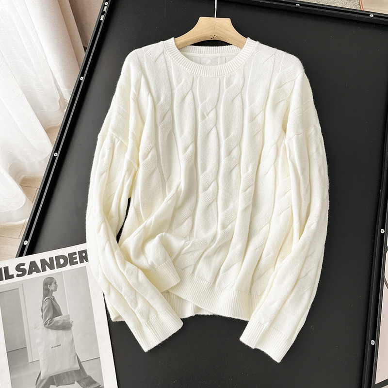 | nameOriginal | Domestic chic 23 Autumn new casual lazy style round neck white soft glutinous twisted cashmere sweater for women |