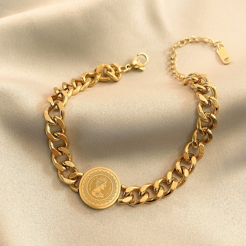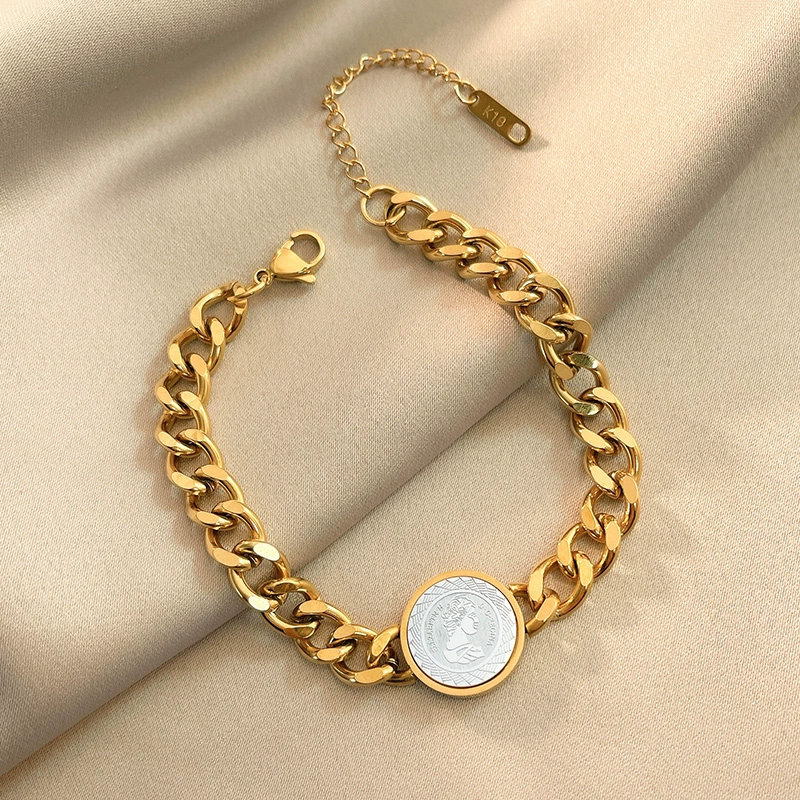 | nameOriginal | Domineering thick chain Queen's avatar bracelet for men and women, cold style hip-hop, versatile titanium steel jewelry, European and American personalized chain |