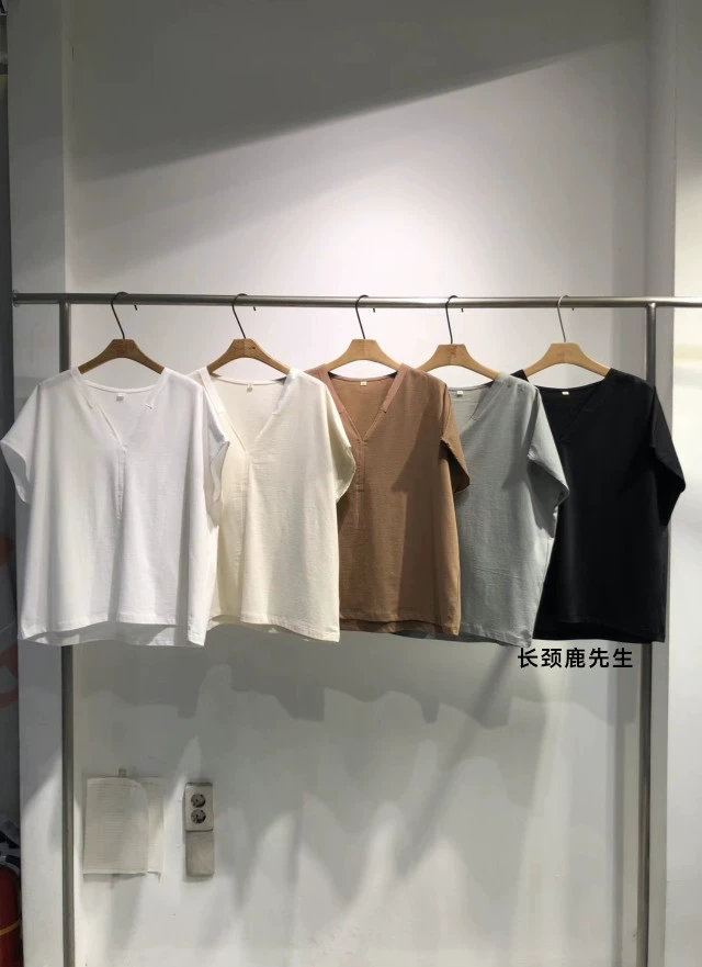 Dongdaemun 2023 Spring Sweetheart Neck Solid Color T-Shirt