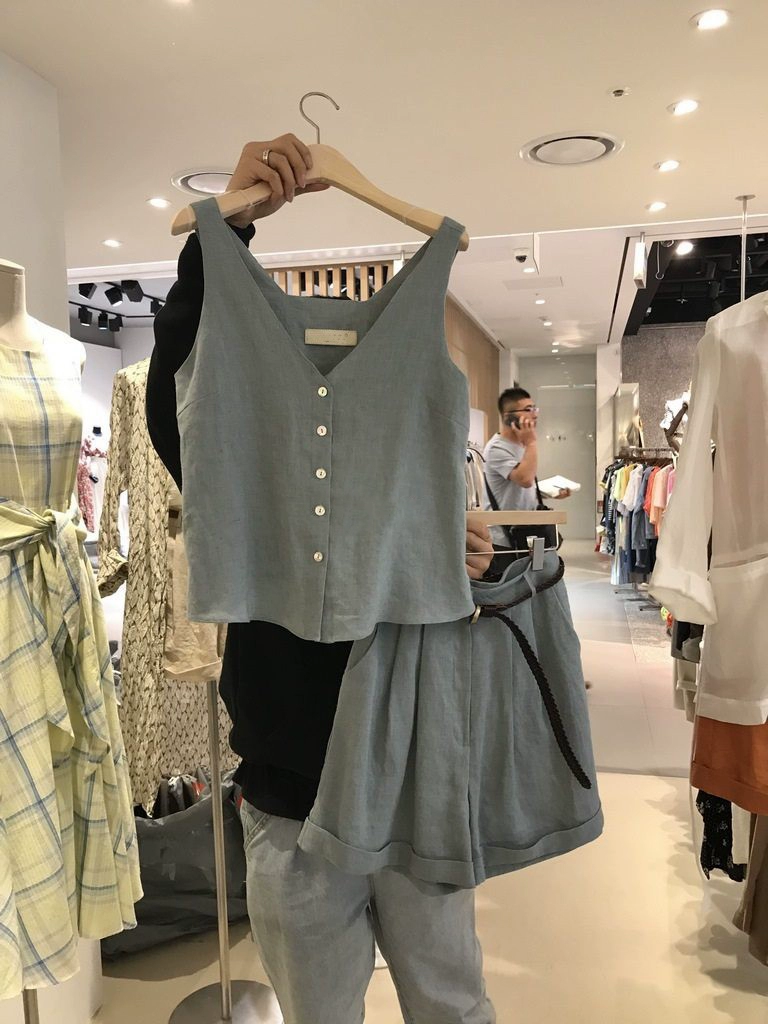 Dongdaemun 2023 Summer Sleeveless High Waist Shorts Linen
