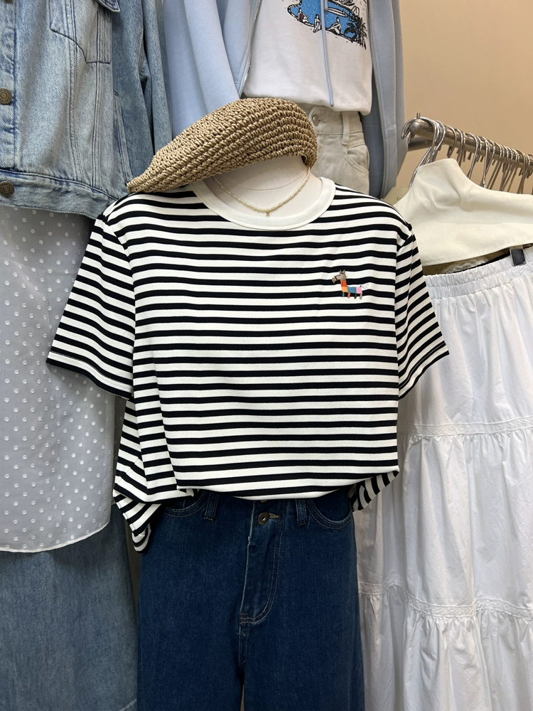 | nameOriginal | Dongdaemun 2024 Summer Striped Casual Round Neck Embroidery |