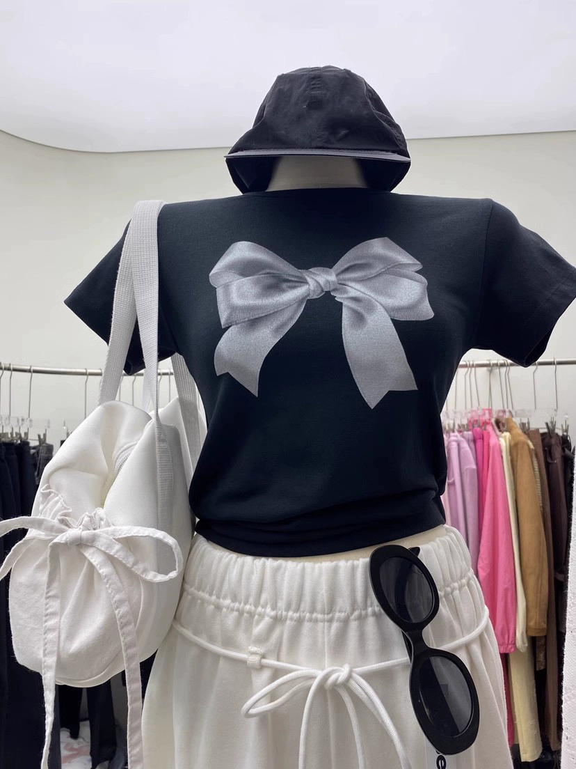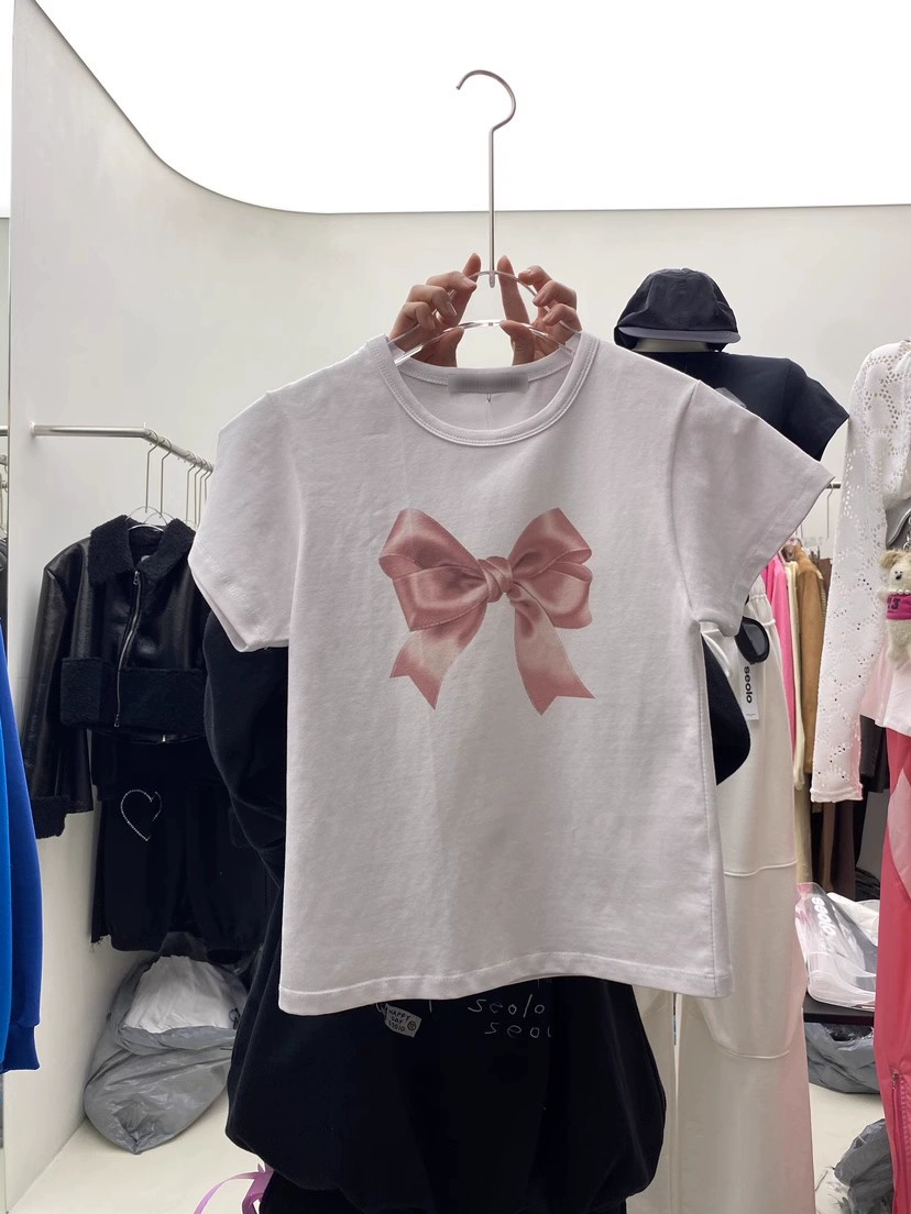 | nameOriginal | Dongdaemun age-reducing printed short-sleeved bow pattern |
