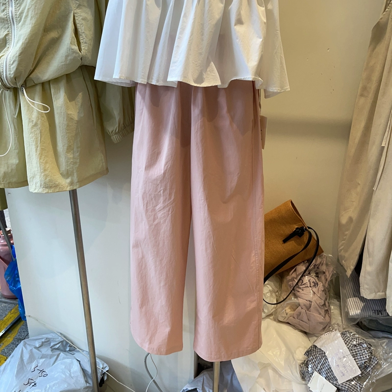 | nameOriginal | Dongdaemun daily solid color elastic high waist loose trousers |