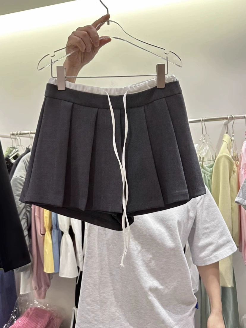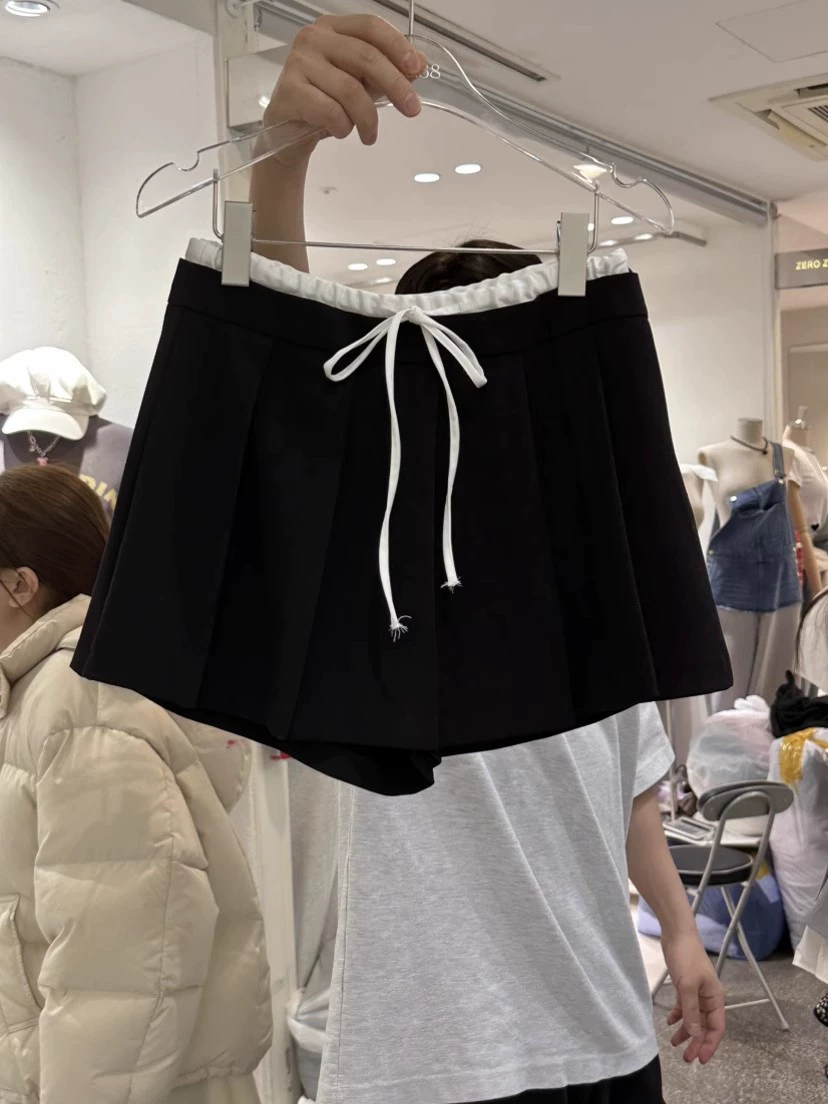 | nameOriginal | Dongdaemun elastic waist contrast pleated shorts drawstring |