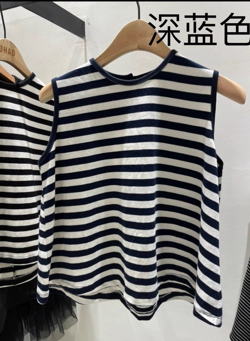 Dongdaemun fashionable hollow round neck sleeveless striped vest