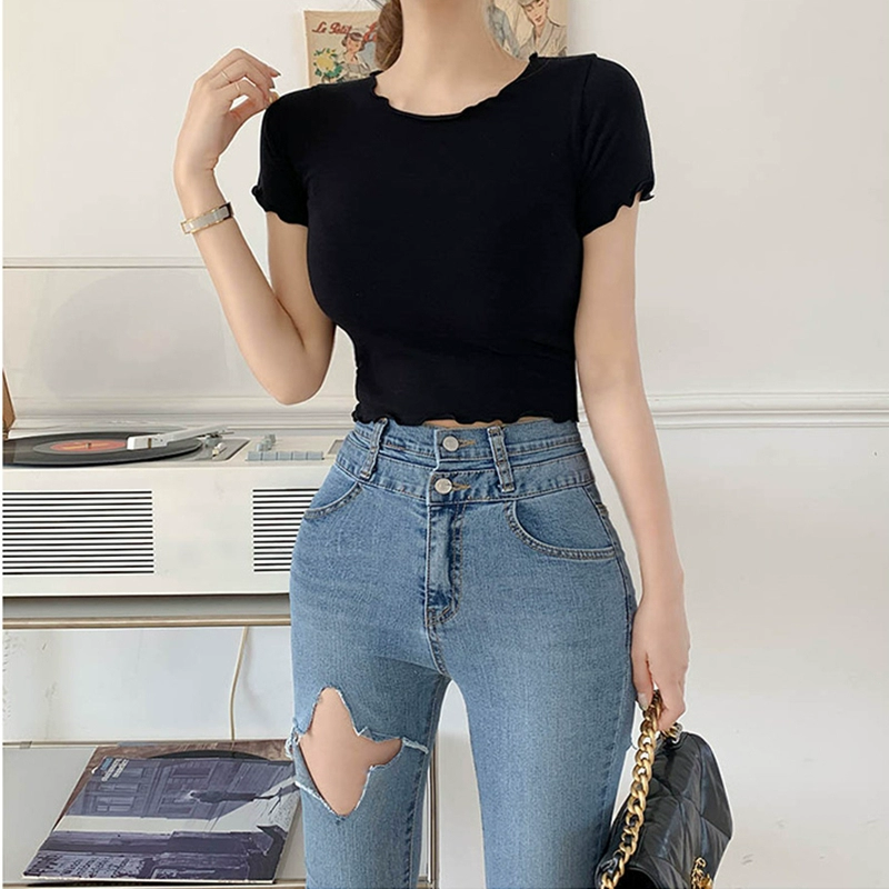 Dongdaemun fungus short-sleeved top with slightly exposed waist