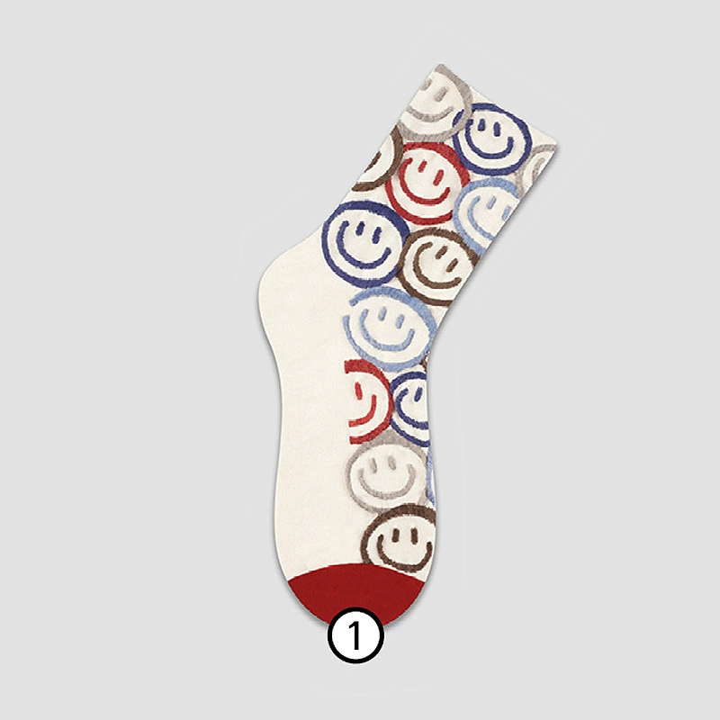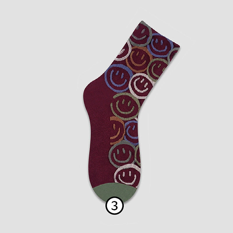 Dongdaemun Korean colorful embossed smiling face pure cotton women’s socks