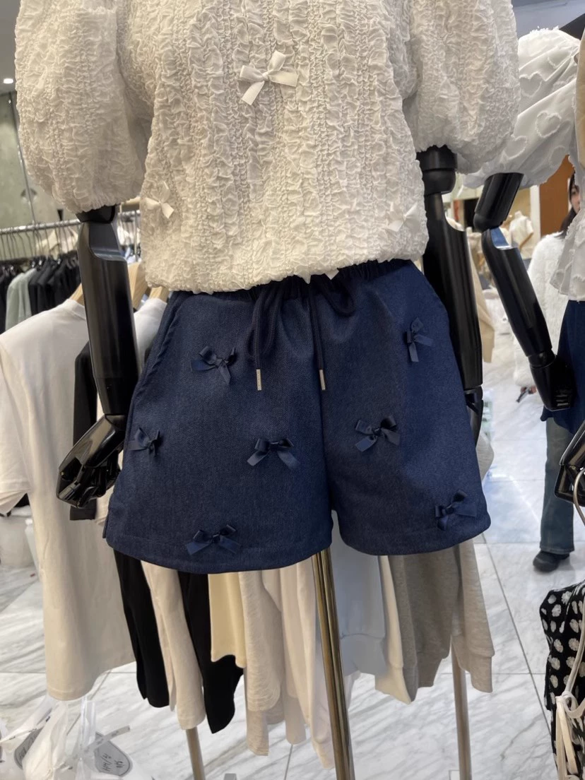 Dongdamen Korean pine waist lace -up shorts shorts and bow knots