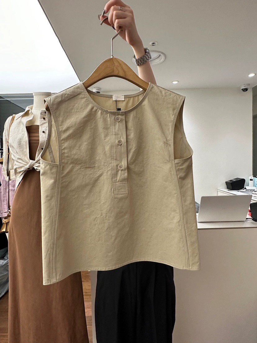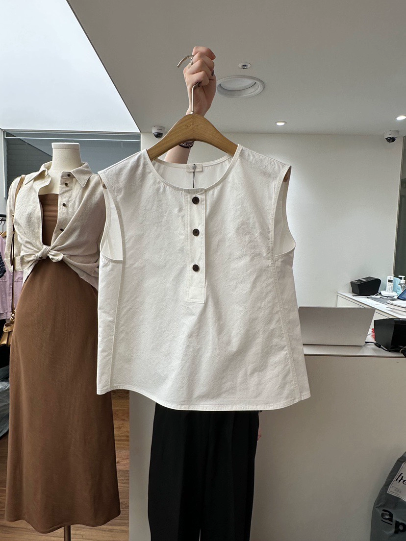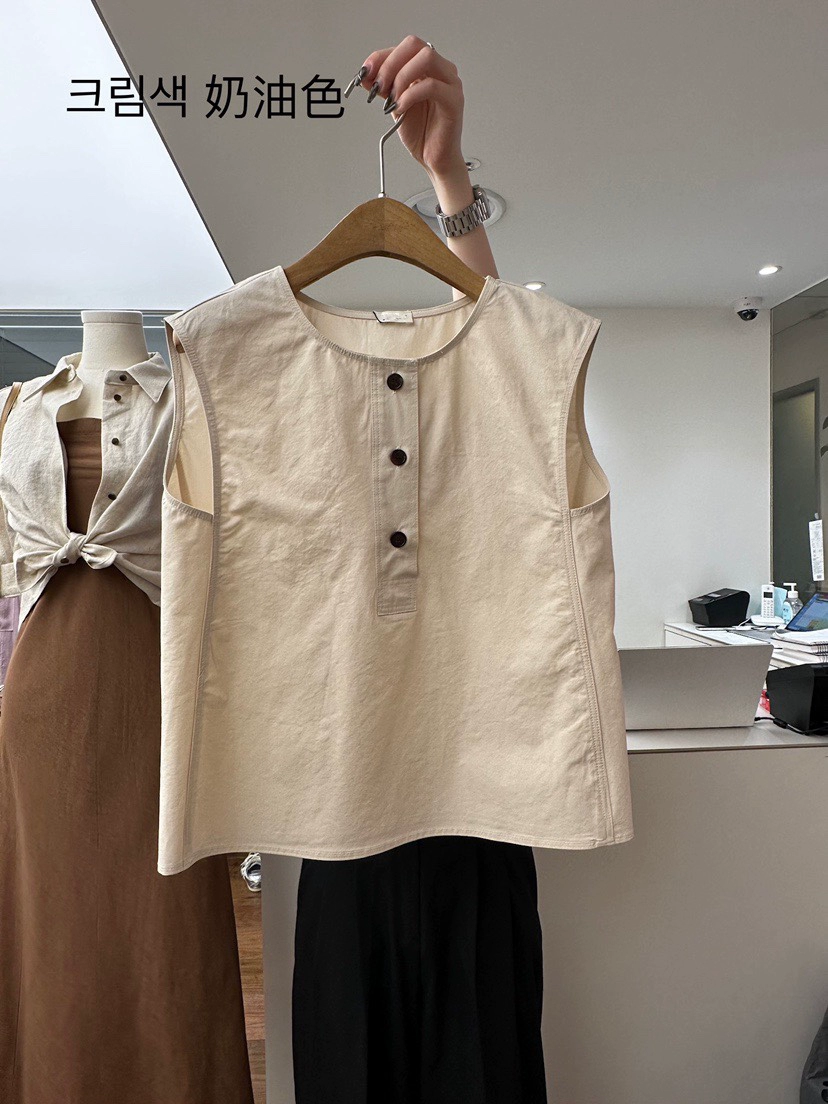 Dongdamen Korean fashion versatile buckle sleeveless shirt