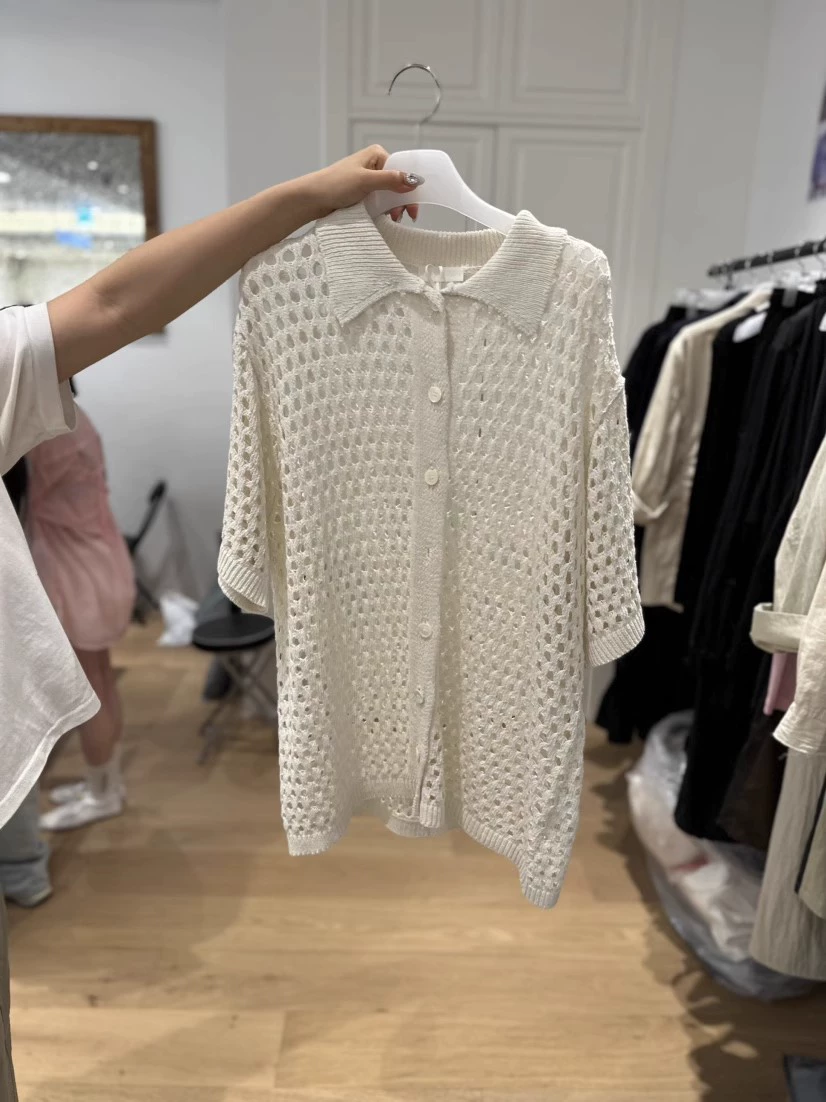 | nameOriginal | Dongdaemun Korean mesh lapel buttoned knitted short sleeves |