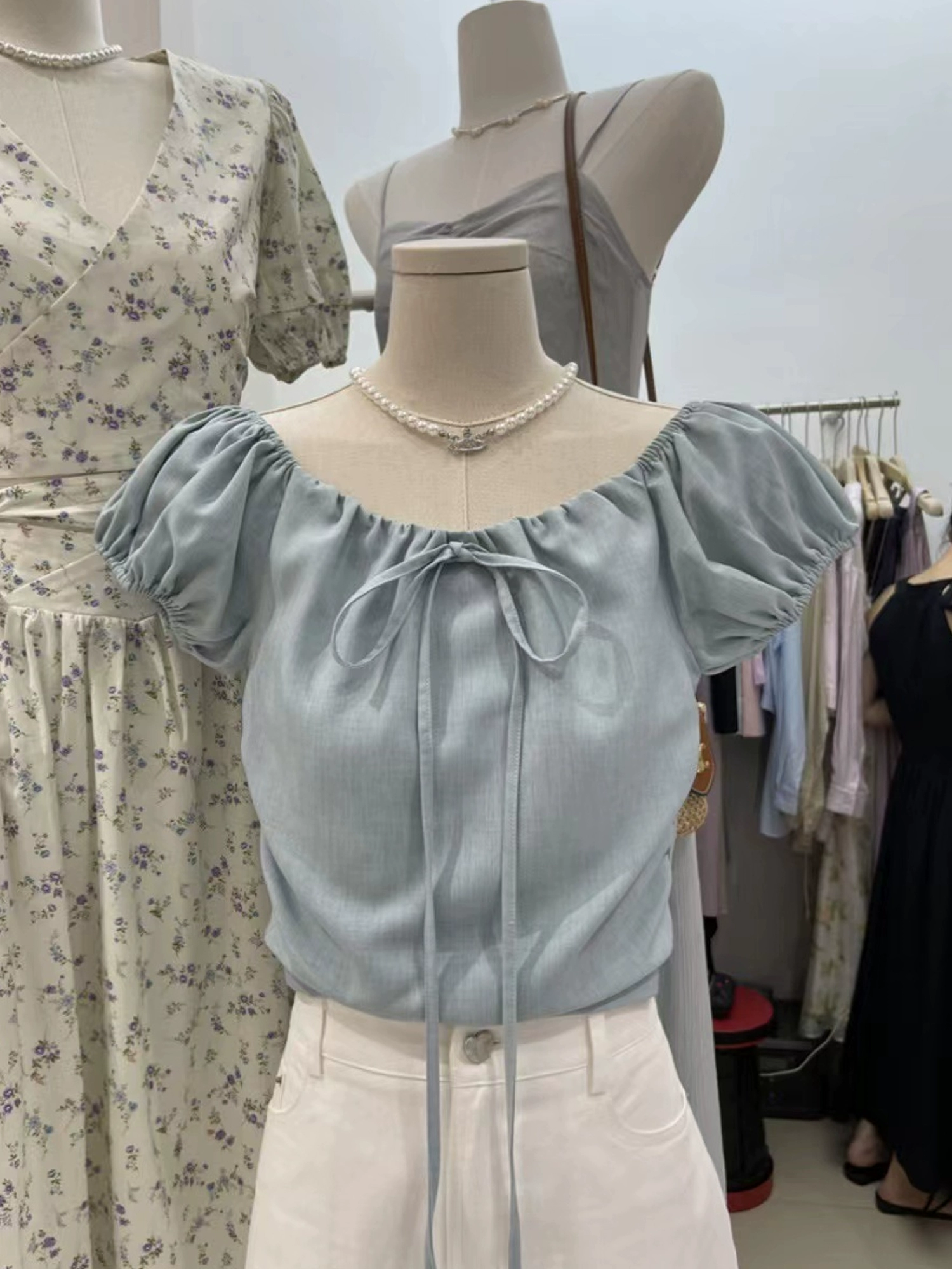 | nameOriginal | Dongdaemun Korean one-shoulder puff sleeve shirt |