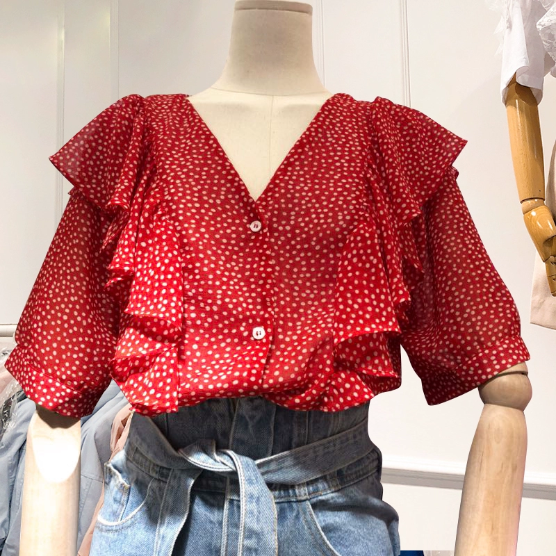 | nameOriginal | Dongdaemun Korean V-neck red polka dot student summer dress |