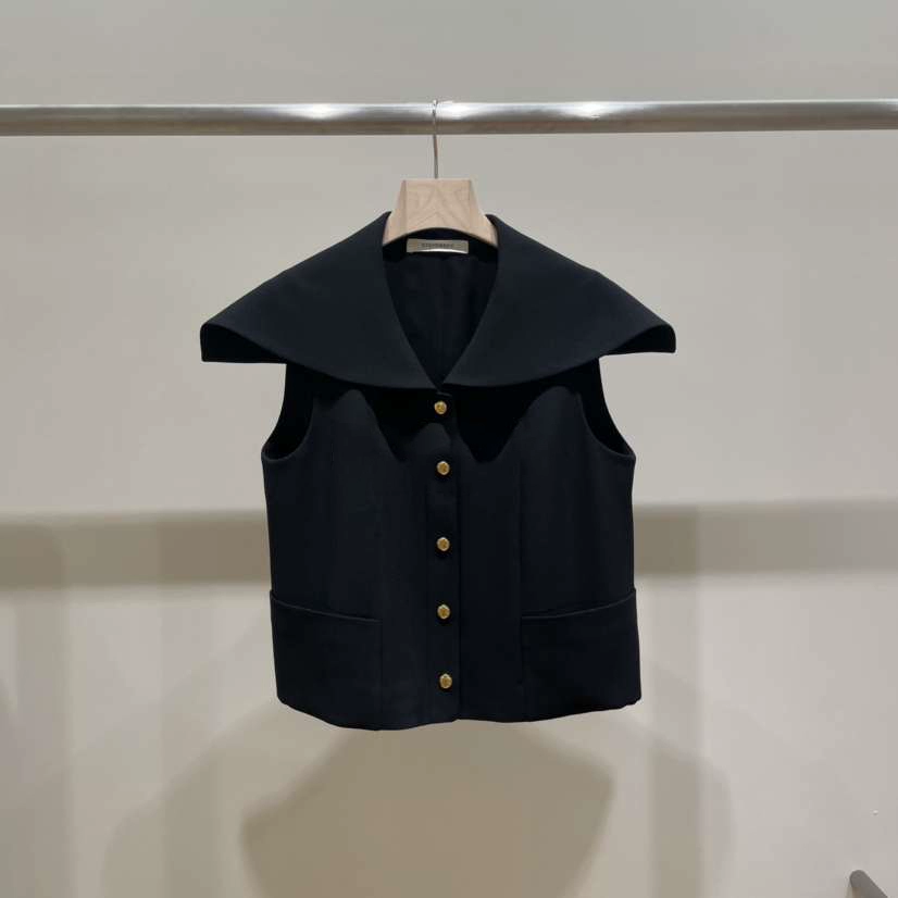 | nameOriginal | Dongdaemun navy collar single breasted crop top vest |