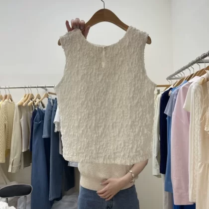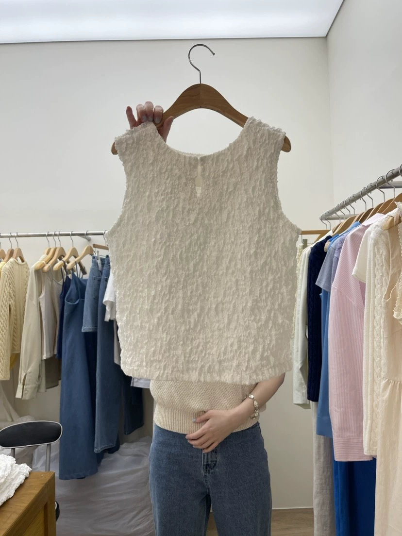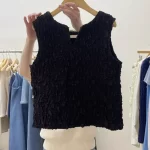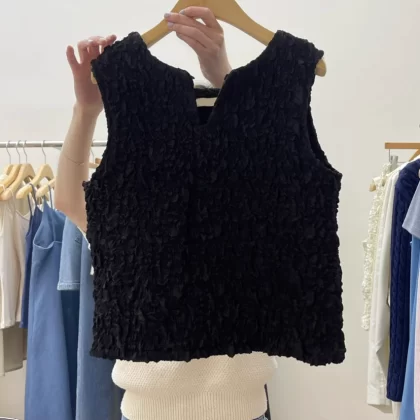 Dongdaemun niche round neck comfortable pleated sleeveless summer dress