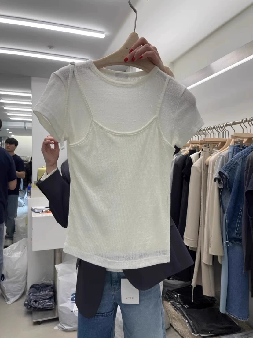 | nameOriginal | Dongdaemun niche short-sleeved casual tops fake two pieces |