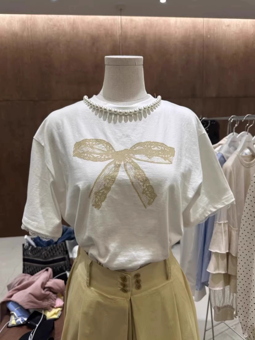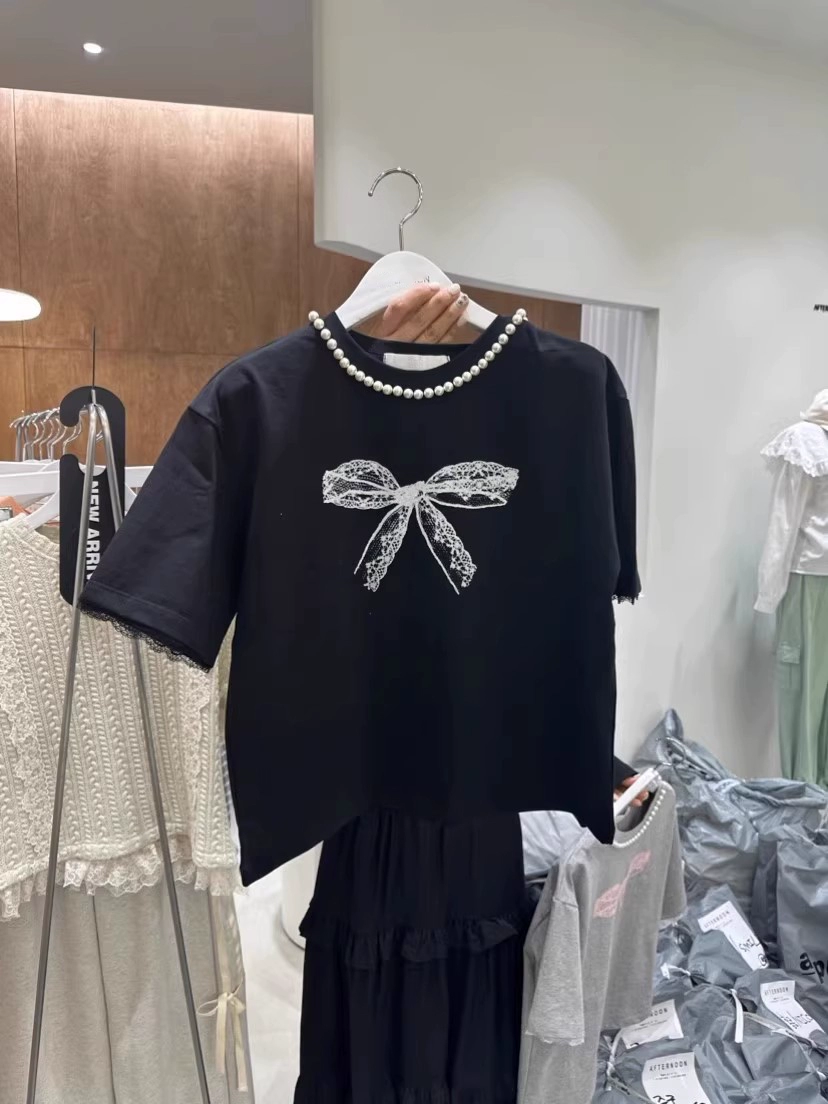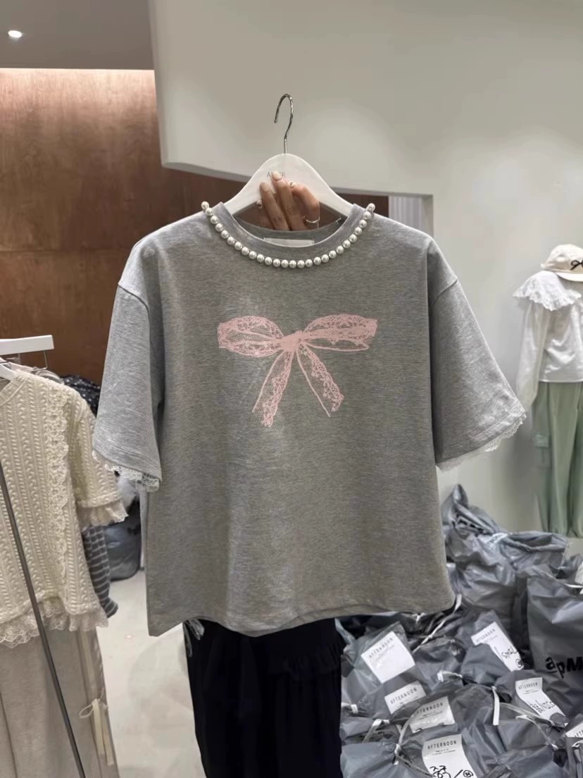 | nameOriginal | Dongdaemun pearl lace short sleeves with bow print |